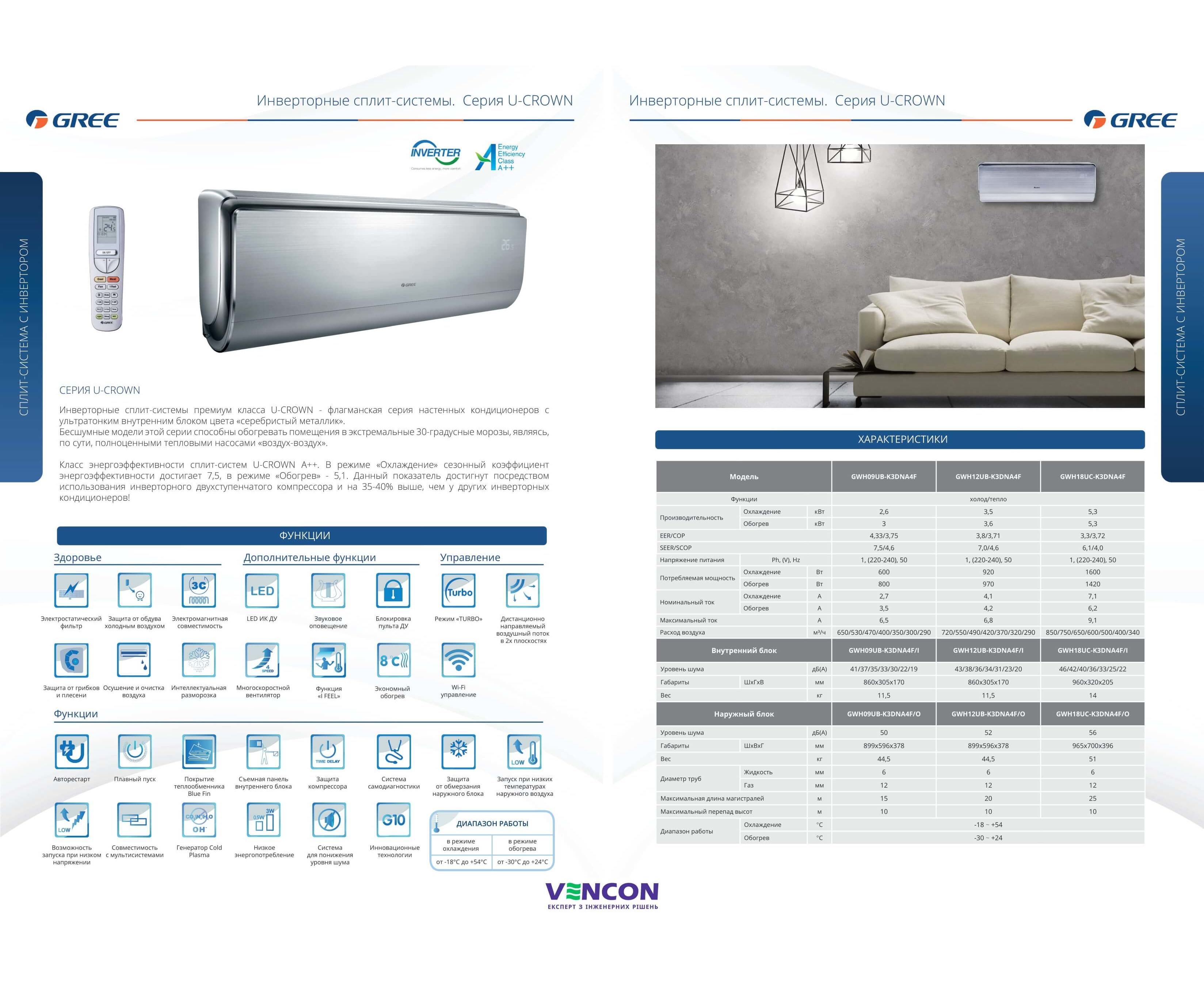 Инверторные сплит-системы U-CROWN – флагманская серия настенных кондиционеров с ультратонким внутренним блоком c дизайном в стиле «металлик» от бренда GREE, появившаяся на нашем рынке в 2015 году.