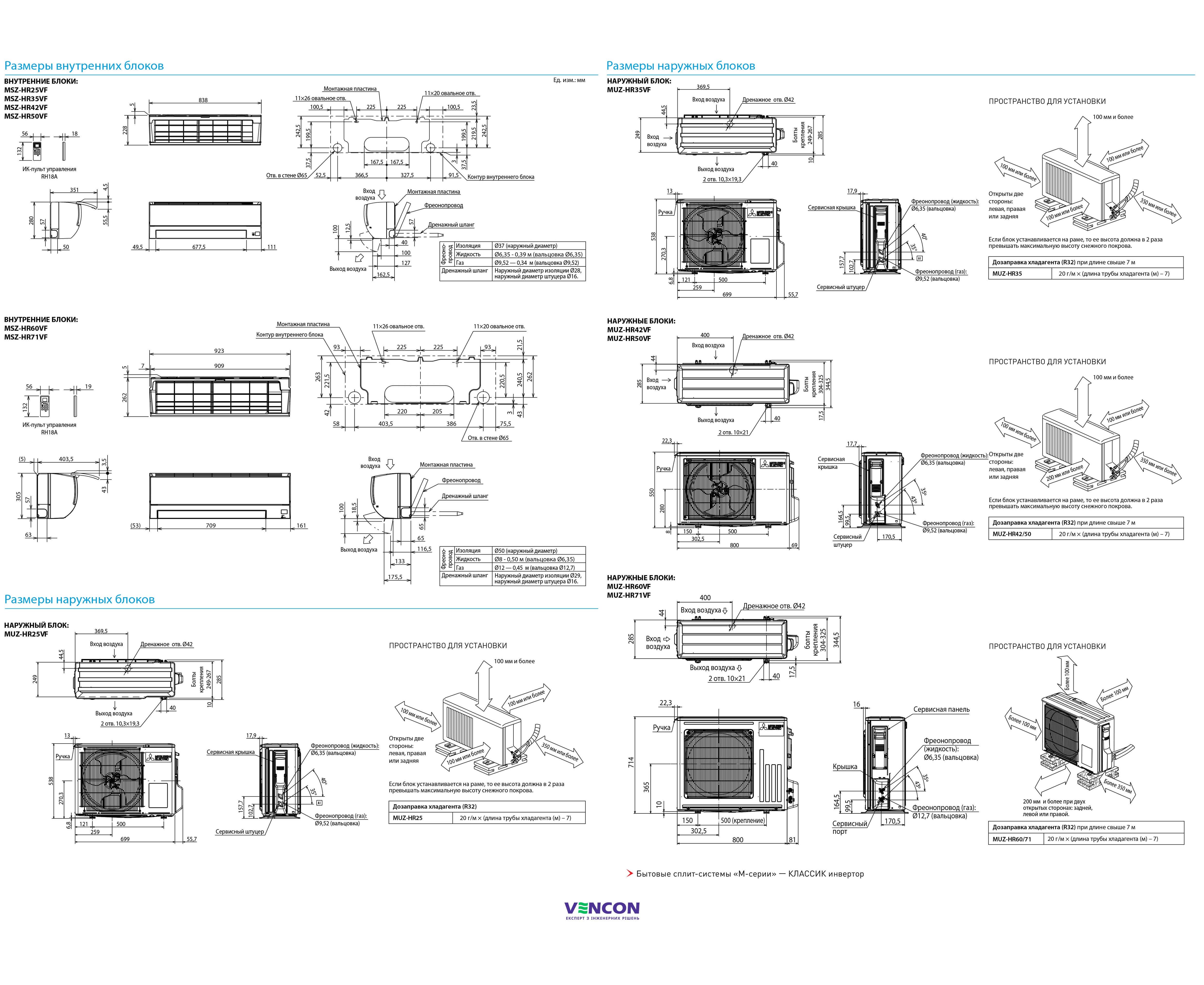 Высота наружного блока