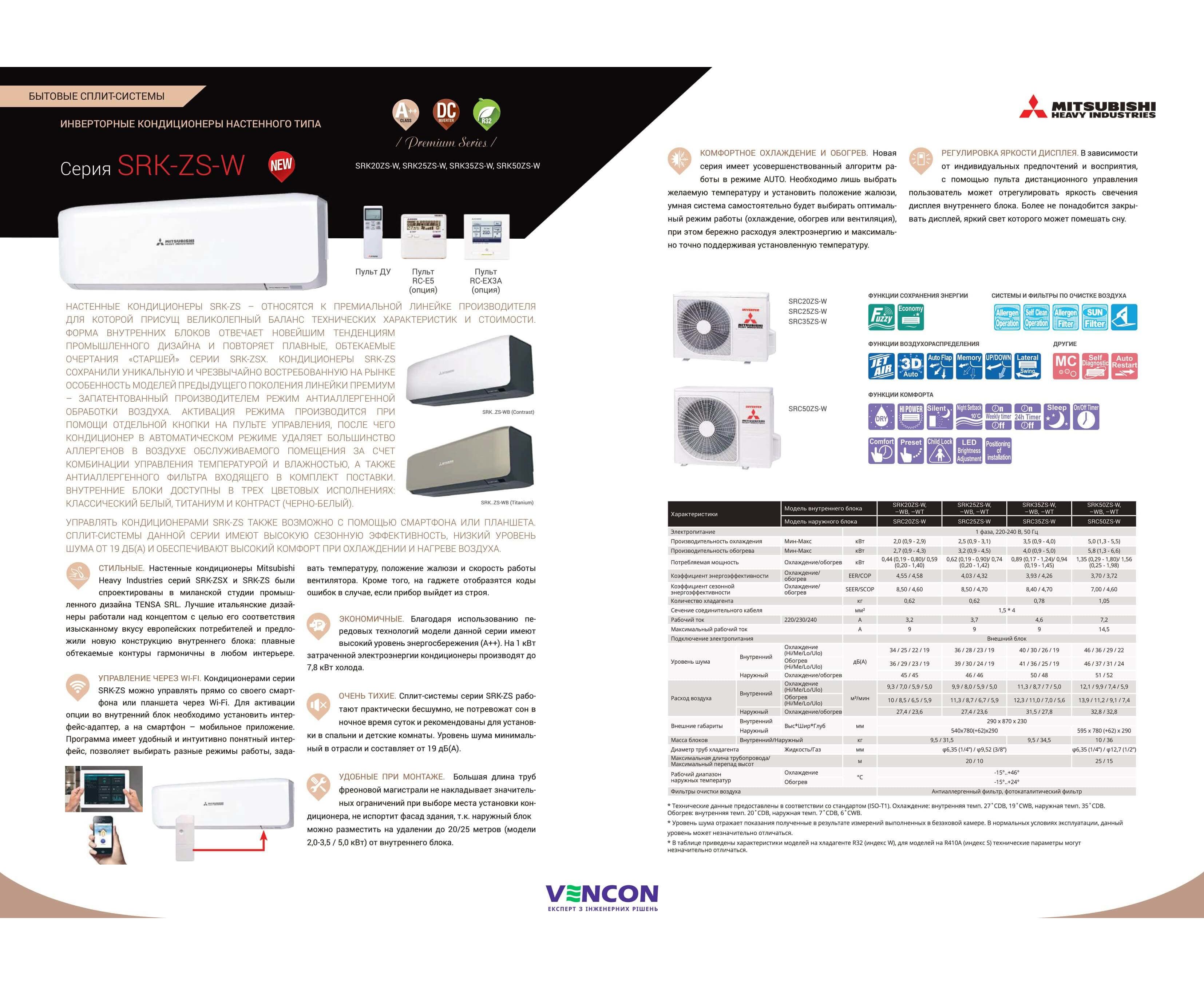 Функционал Mitsubishi Heavy SRK25ZS-WB/SRC25ZS-W