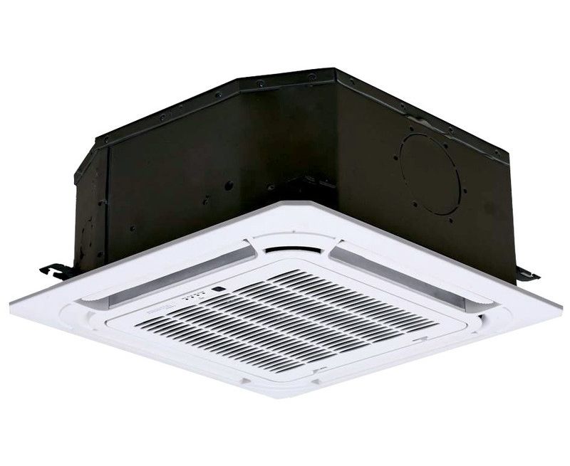 - Кассетный блок 42TSH018 (5,6 кВт) размещается в стандартной ячейке подвесного потолка 600х600 мм.