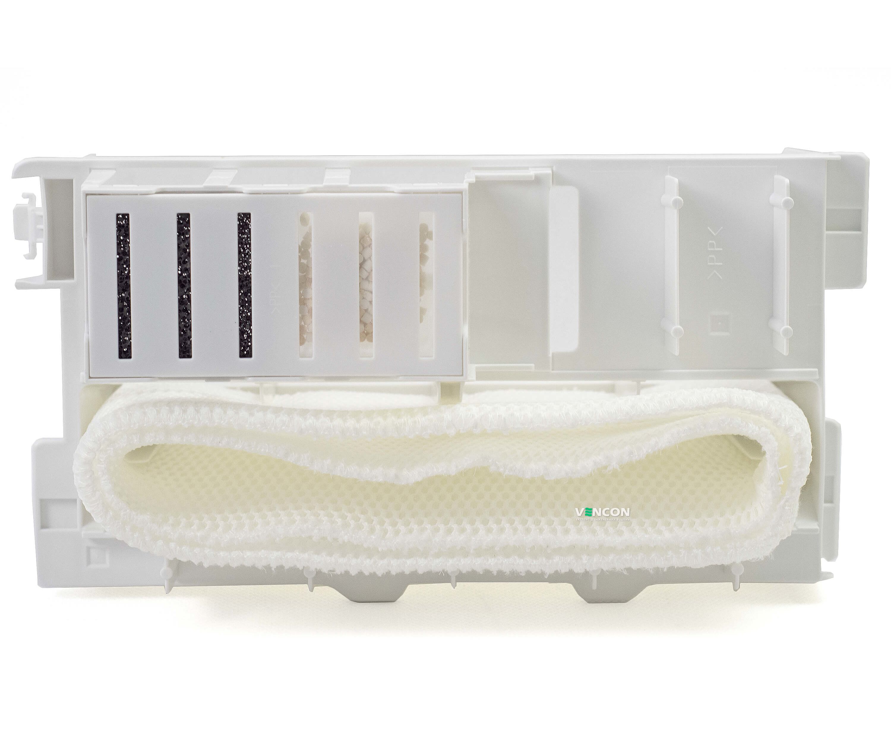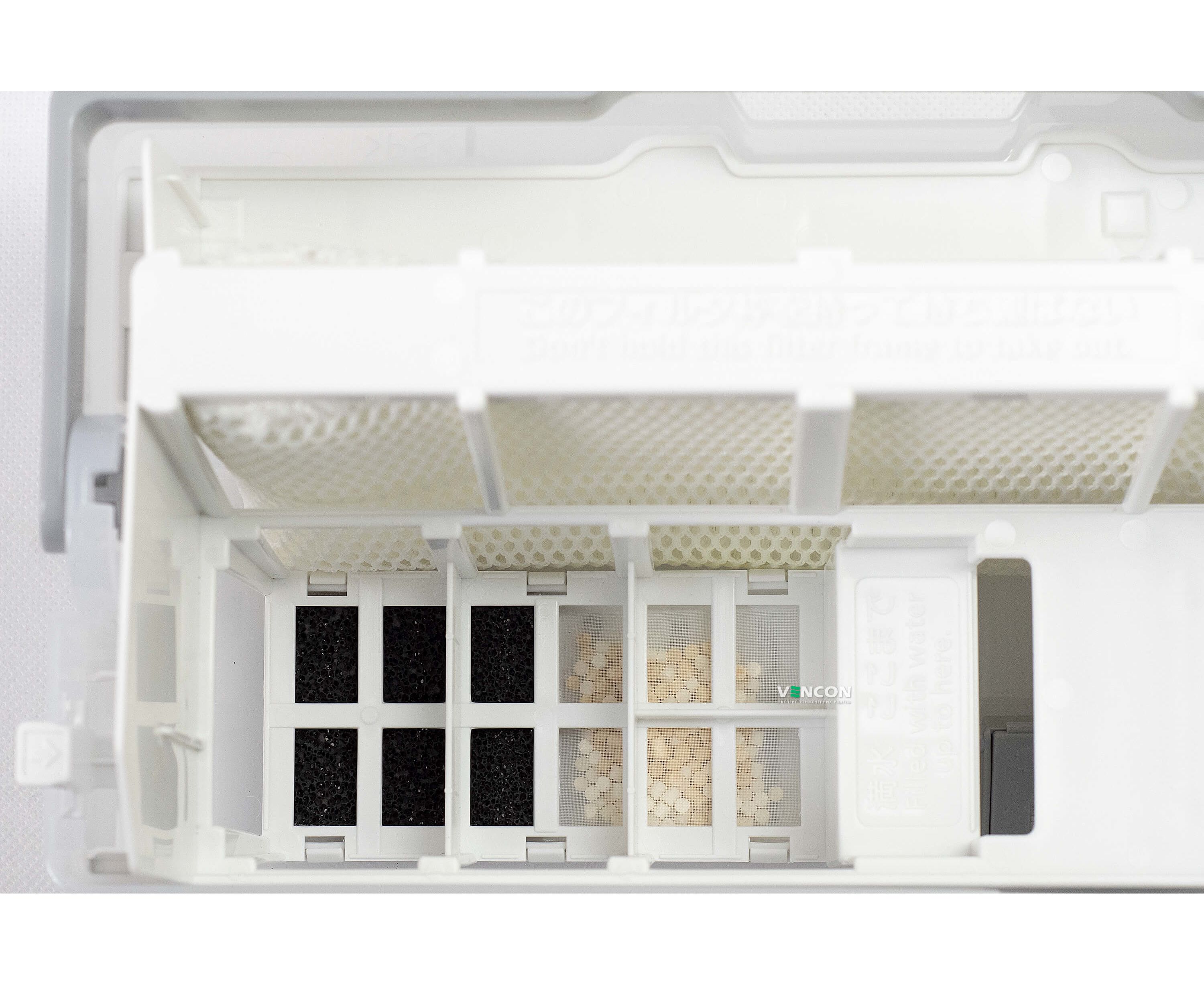 HEPA-фильтр - поэтапно удаляет 99,9% вредных микроорганизмов. На первом этапе удаляется крупная пыль. Затем с помощью запатентованной технологии катехина зеленого чая и антибактериального фермента - более мелкие частицы. А также, проходя сквозь дезодорирующий фильтр, устраняются неприятные запахи. В устройстве присутствует фильтр-элемент, удаляющий выделения от мебели и покрытий.