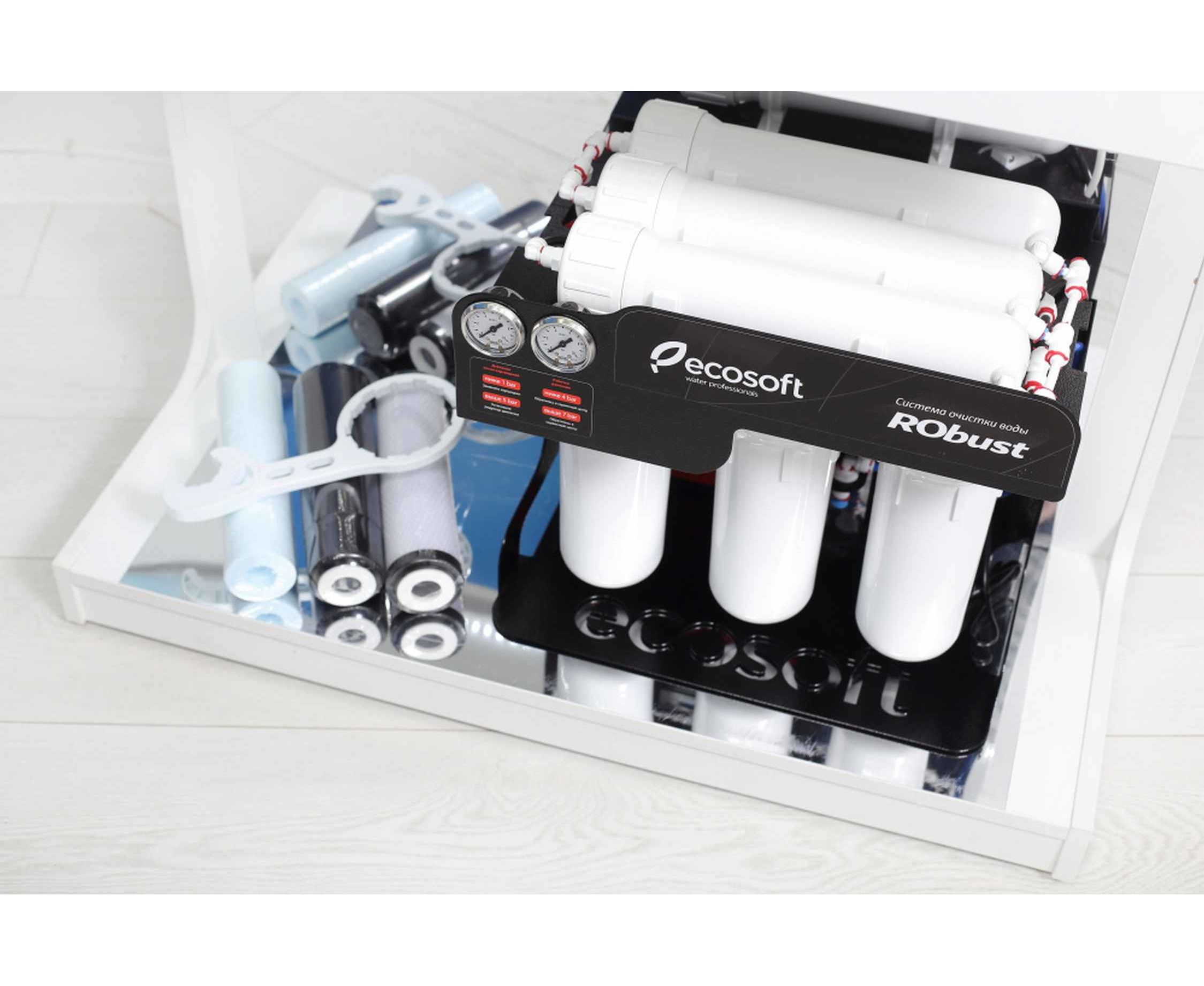 RObust 1000 от Ecosoft это экономично выгодное вложение, обеспечивающее чистой, вкусной водой. Монтажный комплект не требует дополнительных затрат при установке системы.