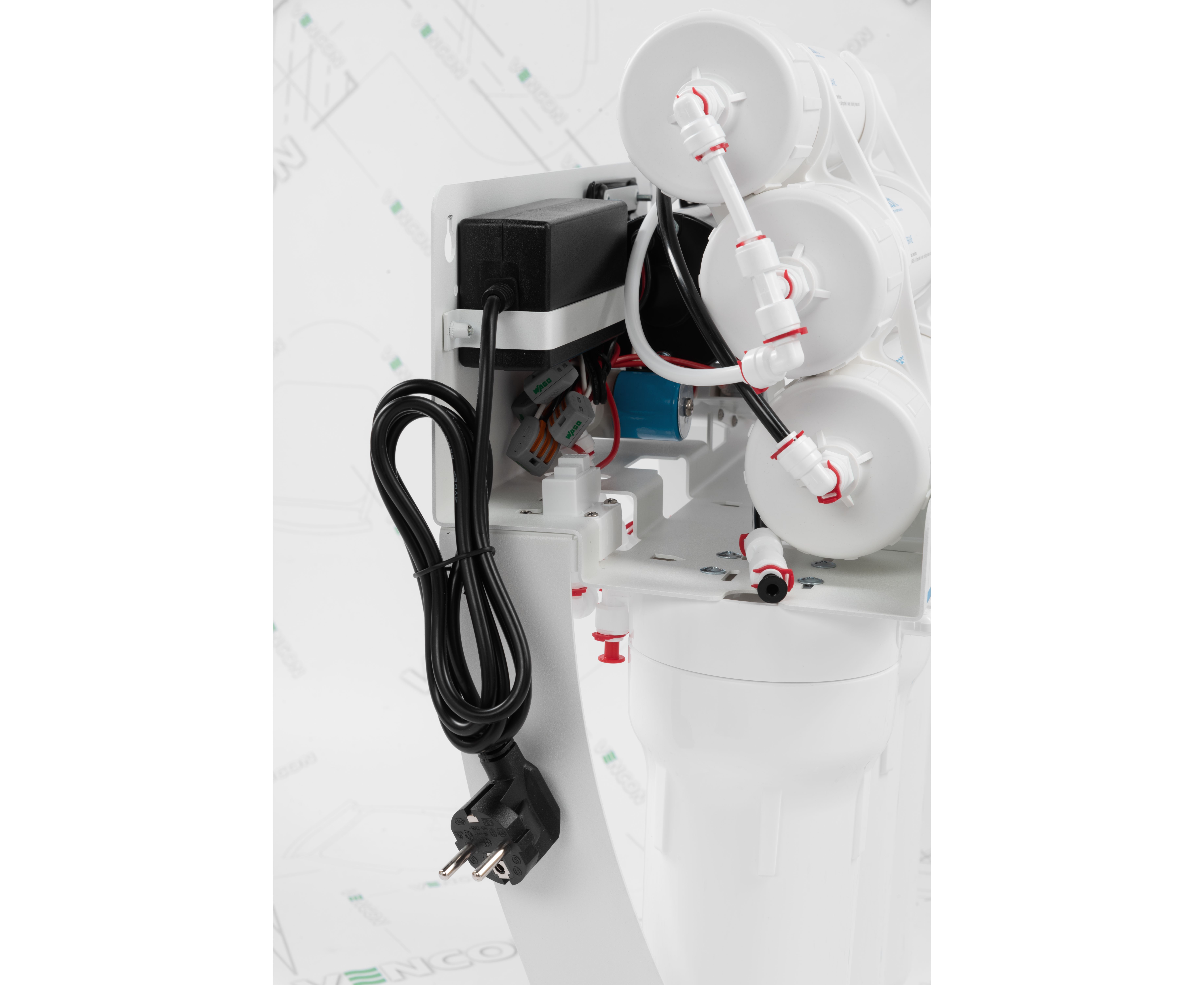 - Используются высокоэффективные картриджи предварительной и посточистки воды (из спрессованного активированного угля и угля из скорлупы кокоса).