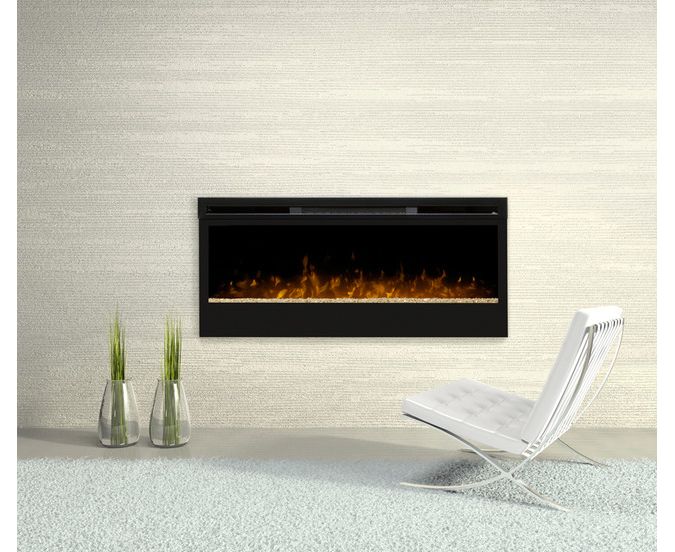 Современный электрокамин Dimplex Synergy настенного типа в стиле hi-tech, лицевая панель выполнена из посеребренного и тонированного стекла с реалистичной технологией пламени Optiflame, благодаря которым достигается особый и более реалистичный эффект горения.