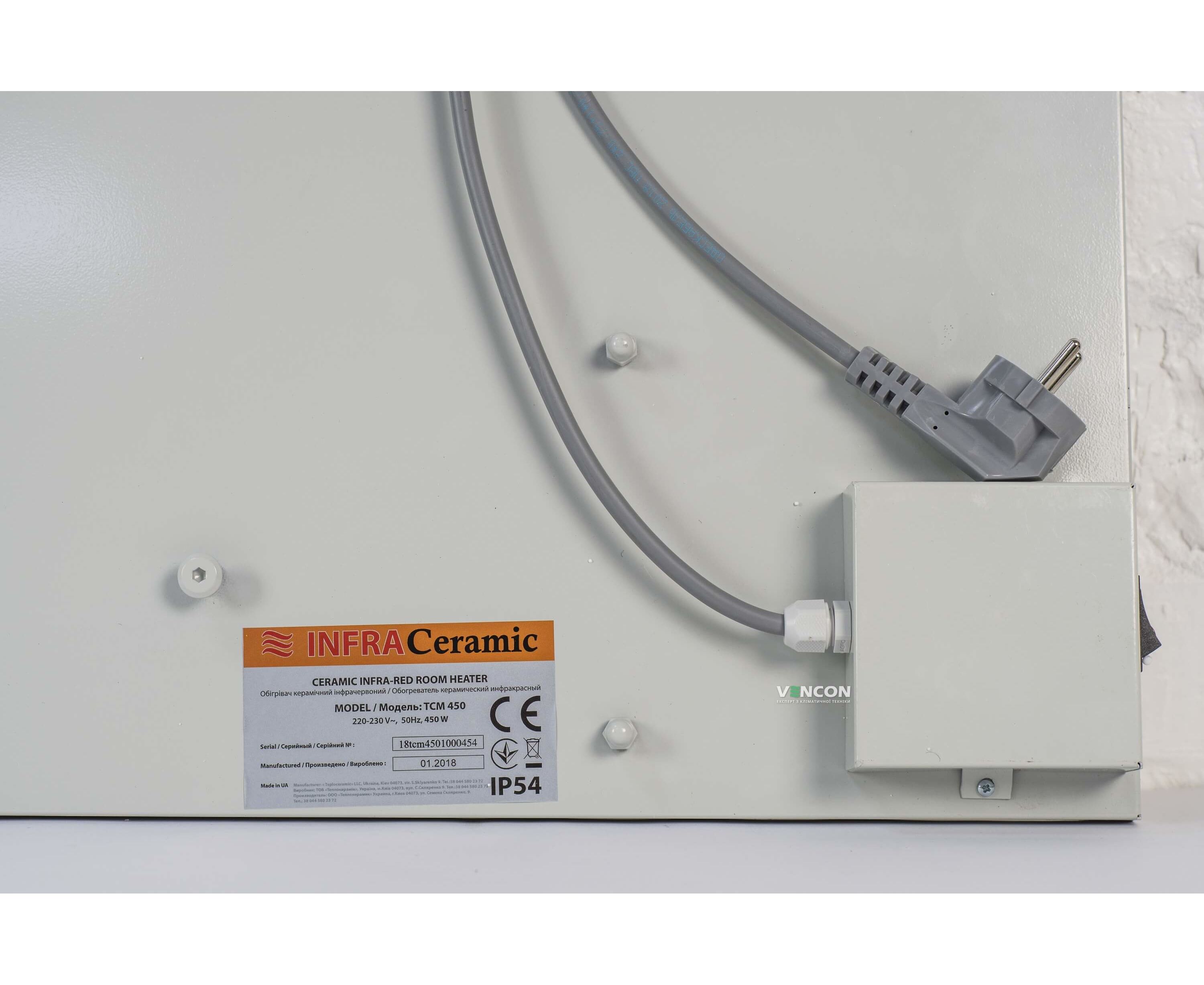 Безопасность. Керамопанель TCM 450 не способна к самовоспламенению. Не боится перепадов напряжения и перебоев электричества. При правильном монтаже, падение обогревателя невозможно.