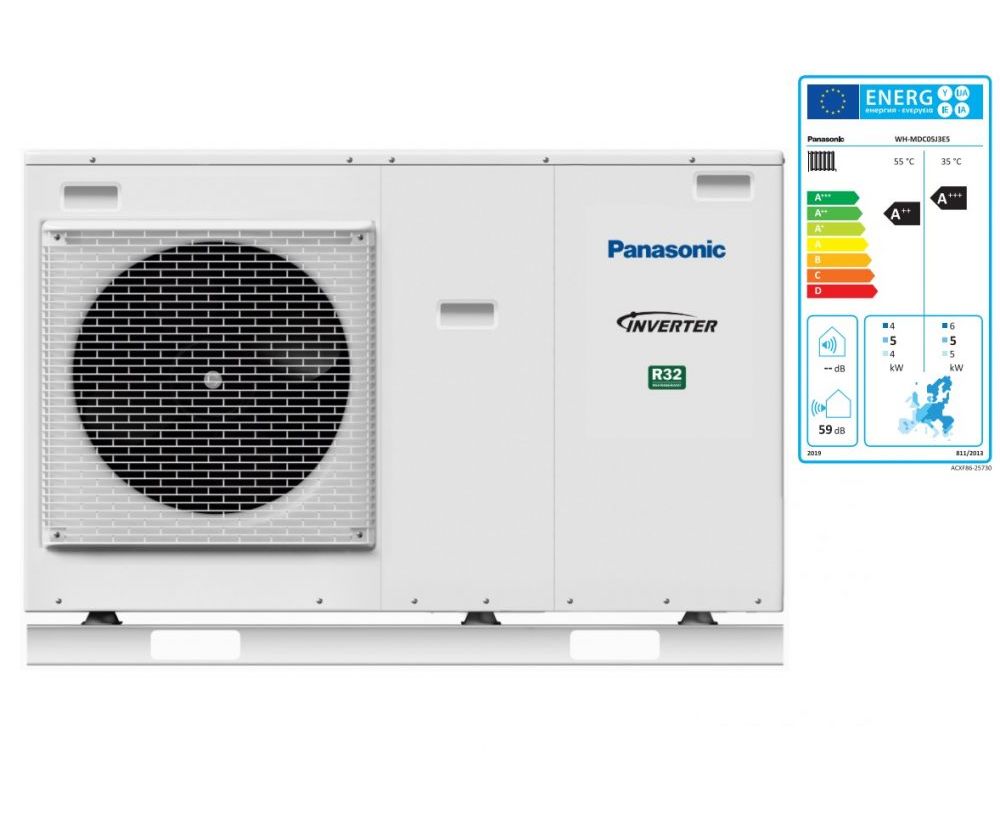 Panasonic Aquarea High Performance, исполнение Mono-Bloc (только наружный блок). Модель WH‑MDC05J3E5. Представляет собой однофазный тепловой насос «Воздух-Вода» на 5 кВт, который состоит из: