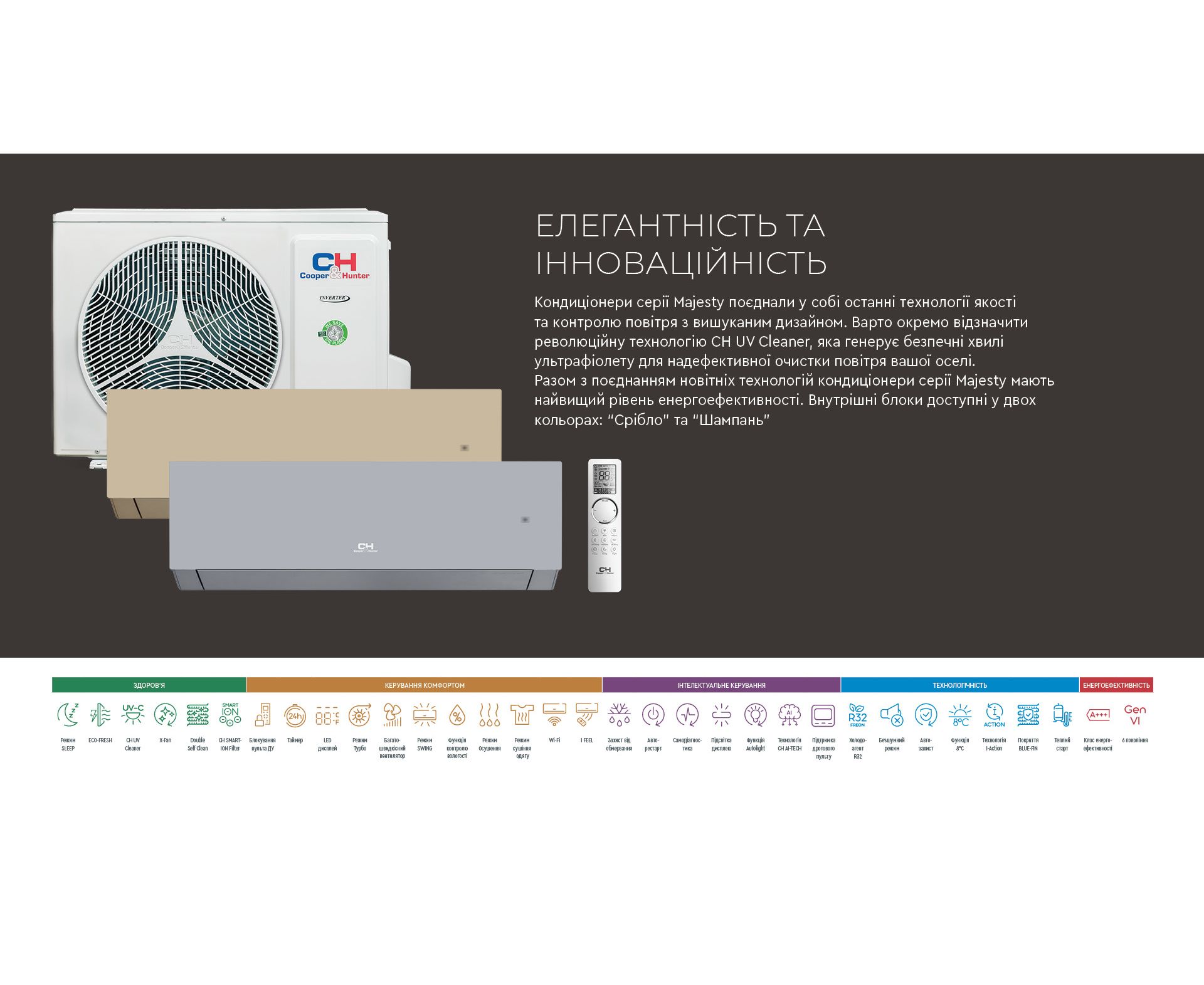 Кондиціонер спліт-система Cooper&Hunter Majesty CH-S09FTXAM-GD