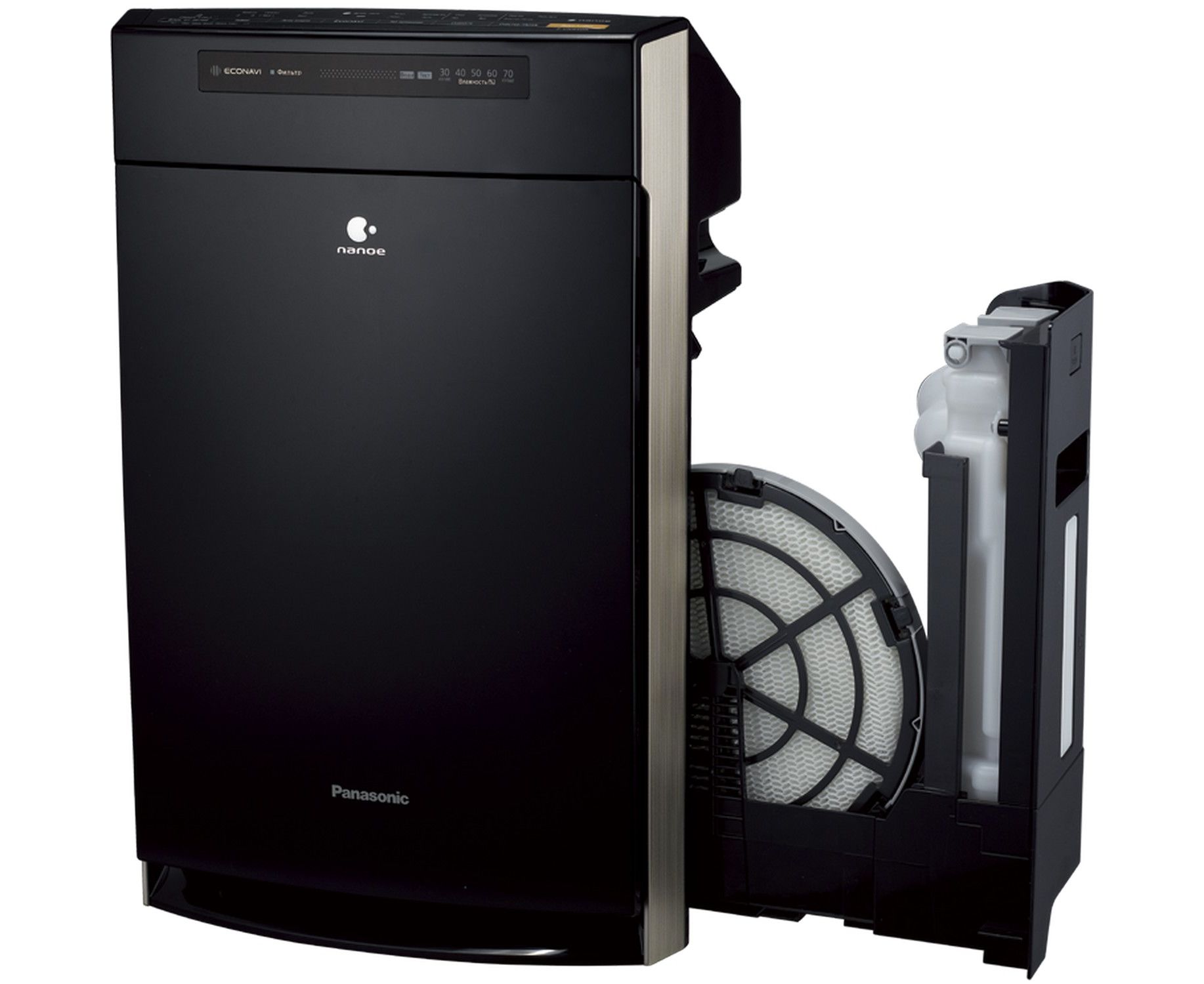 - Вбудована система багатоступеневої очистки забезпечує максимальний ефект: груба очистка від пилу й інших, досить великих часток; НЕРА фільтр, утримує дрібні частинки пилу, пилку і т. д. аж до вірусів і бактерій; дезодоруючий блок дозволяє очистити приміщення від запаху тютюнового диму, кухонних ароматів, запахів тварин, санвузлів та інших; іонізуючий блок з запатентованою технологією NANOE.