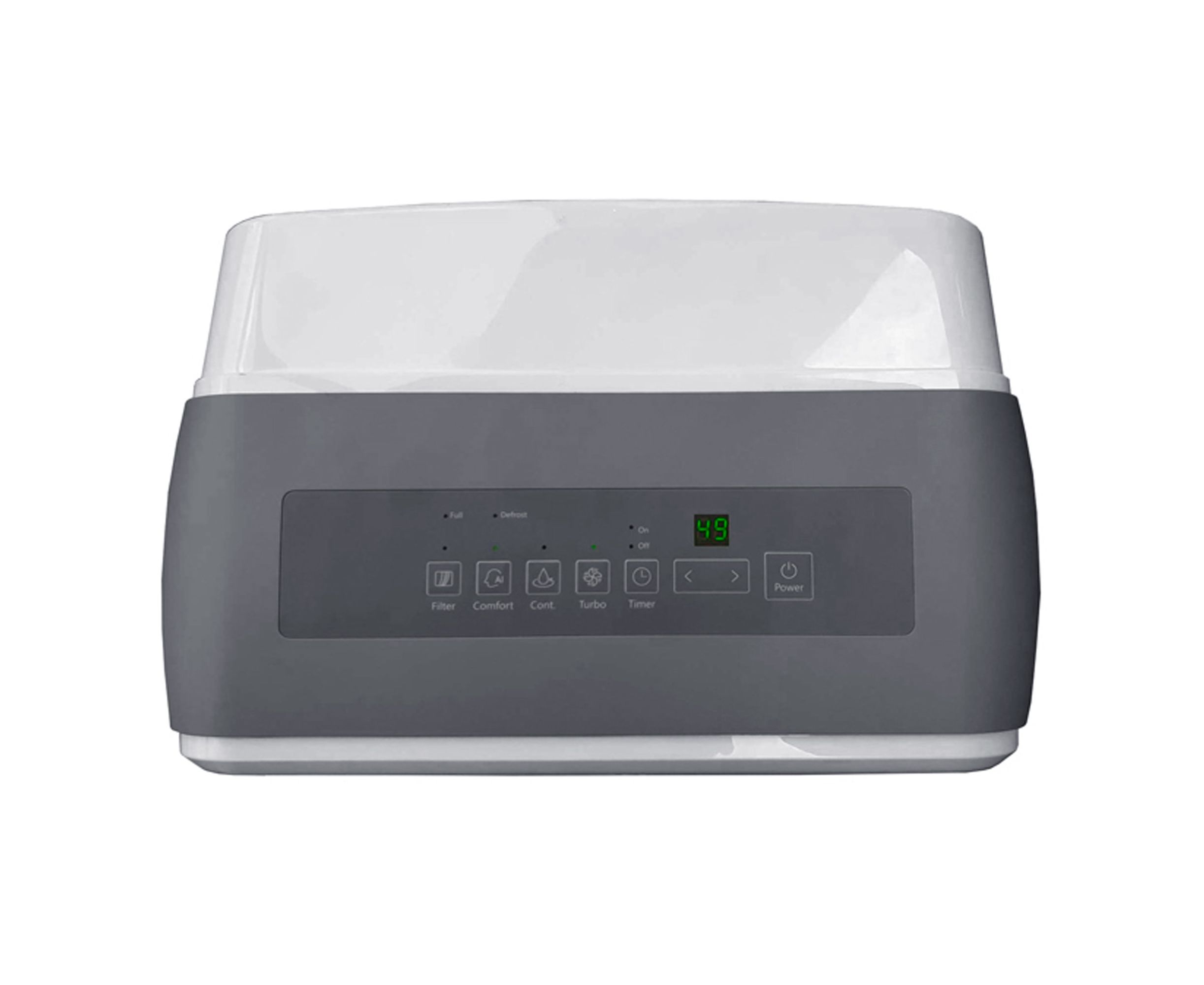 автоотключение при заполнении контейнера, авторазморозка, воздушный фильтр, встроенный гигростат, дисплей, дренаж, индикатор загрязнения фильтра, регулировка скорости, сбор конденсата в бак, таймер выключения