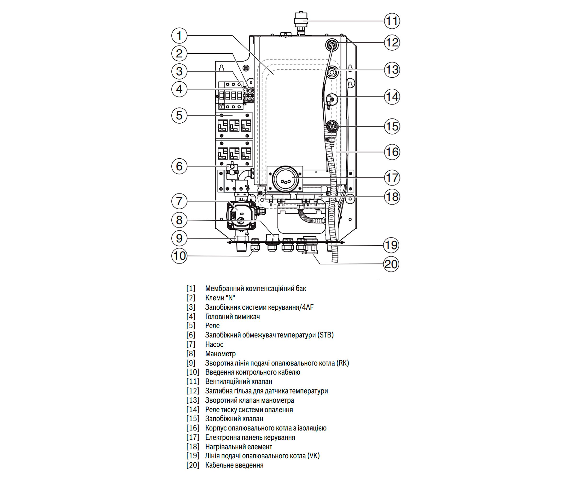 - У разі підвищення тиску в теплообміннику автоматичне повітряне відведення скидає його. Це запобігає виходу приладу з ладу.