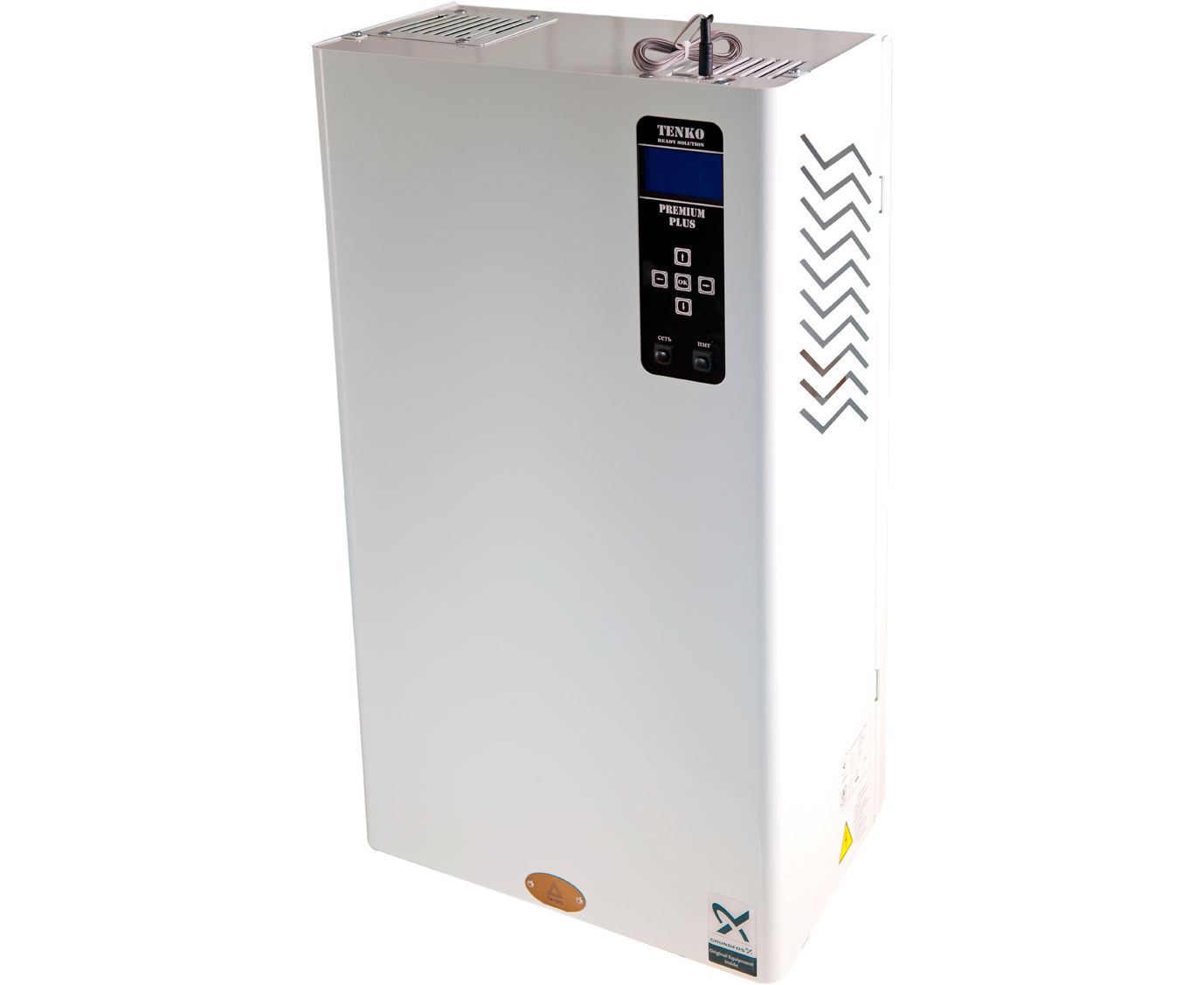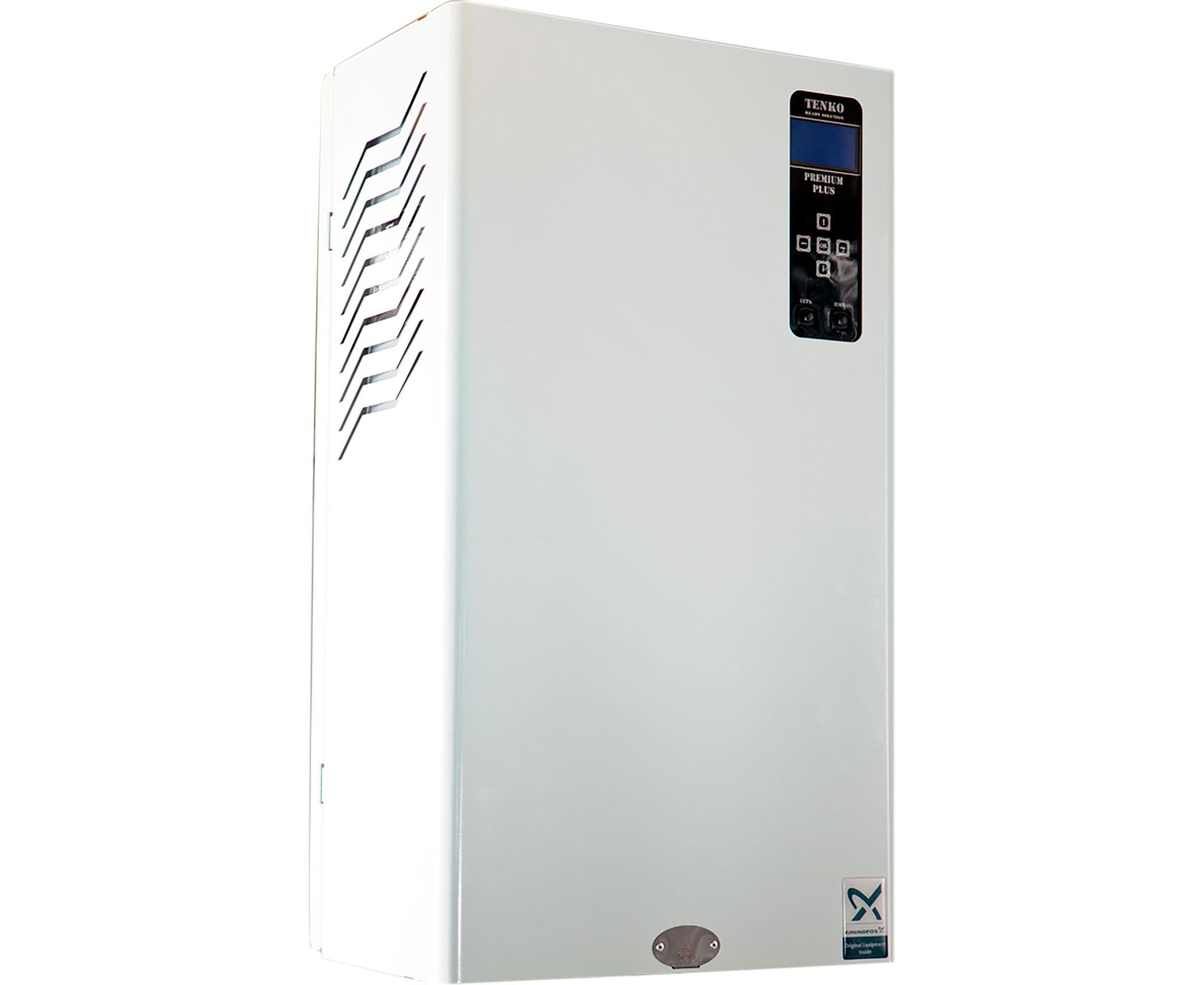 Серія електричних котлів TM Tenko & quot; Преміум Плюс & quot; укомплектована трьох швидкісним циркуляційним насосом, розширювальним баком об'ємом 10 літрів, запобіжним клапаном і датчиком протока.А автоматичним відводом повітря, кімнатним термостатом з недельно/добовим програматором.