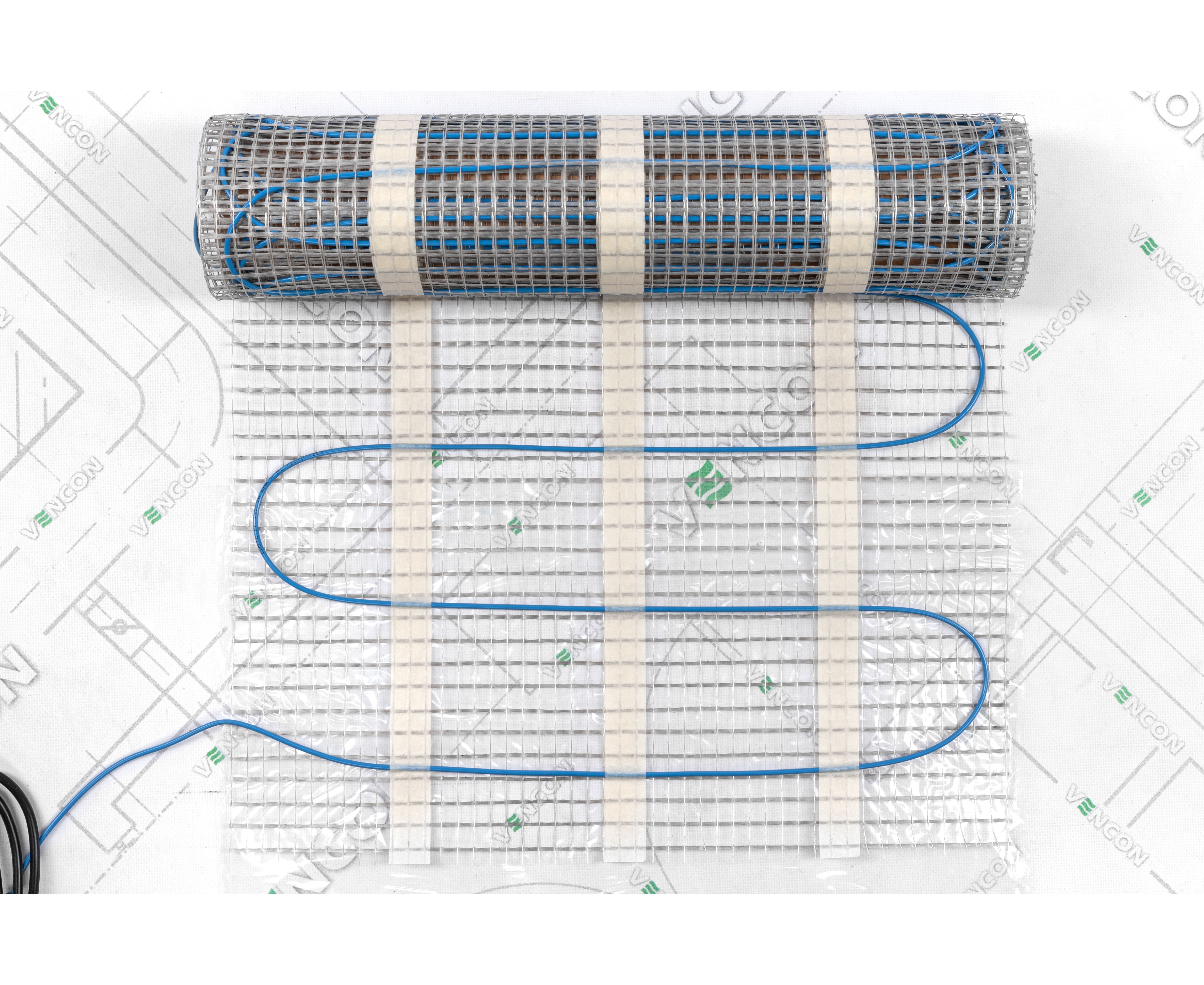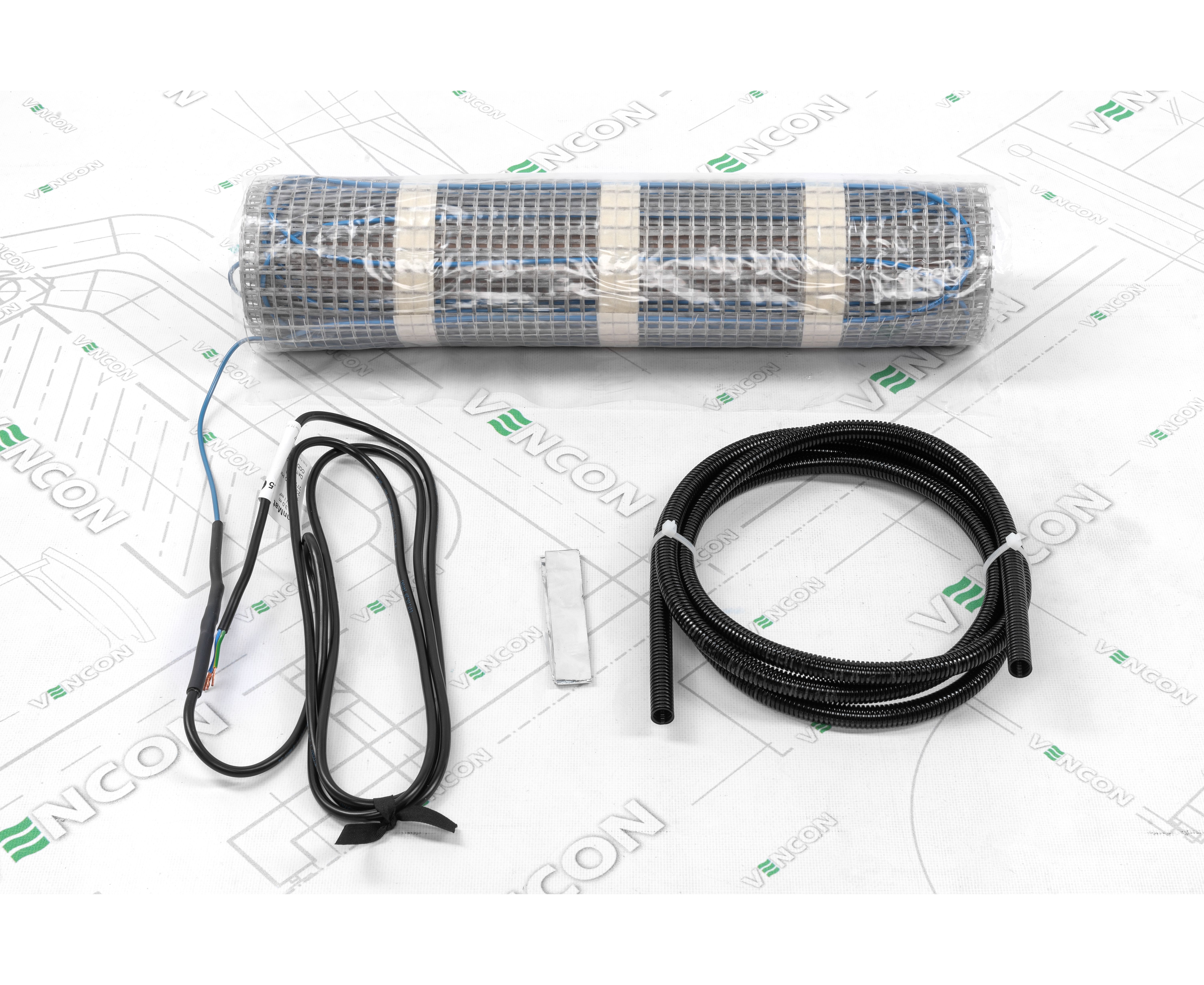 Мат укладається на підготовлену суху або вологу поверхню. Алюмінієва сітка на клейовій основі полегшує цю процедуру, і роботи проводяться швидко. Поверх можна заливати цементну стяжку. Нагрівальний кабель проходив перевірку на цілісність і на здатність витримувати скачки напруги.
