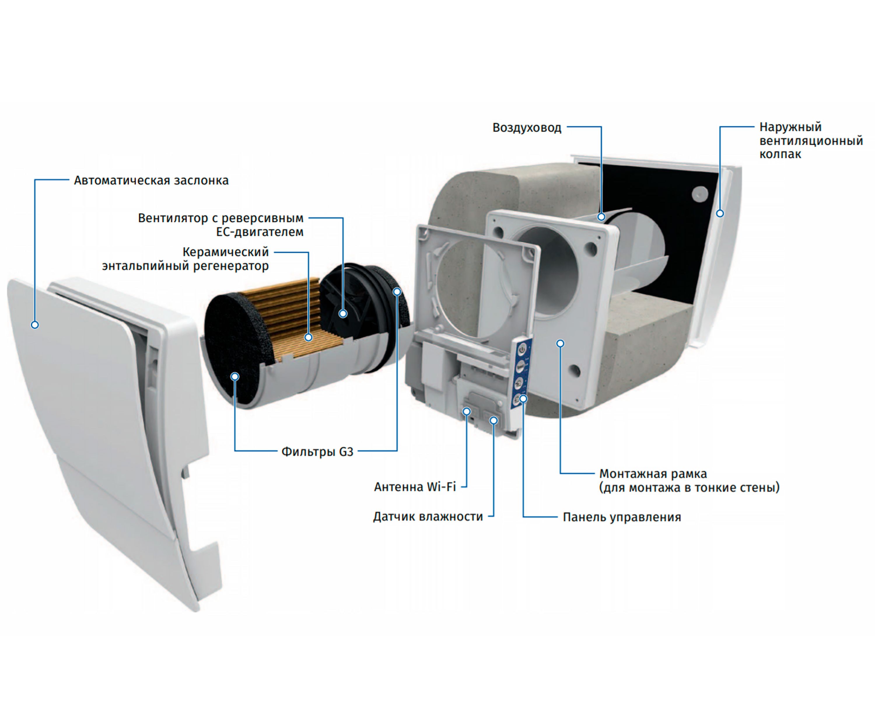 Агрегат призначений для монтажу всередину стіни в зовнішній стіні будинку.