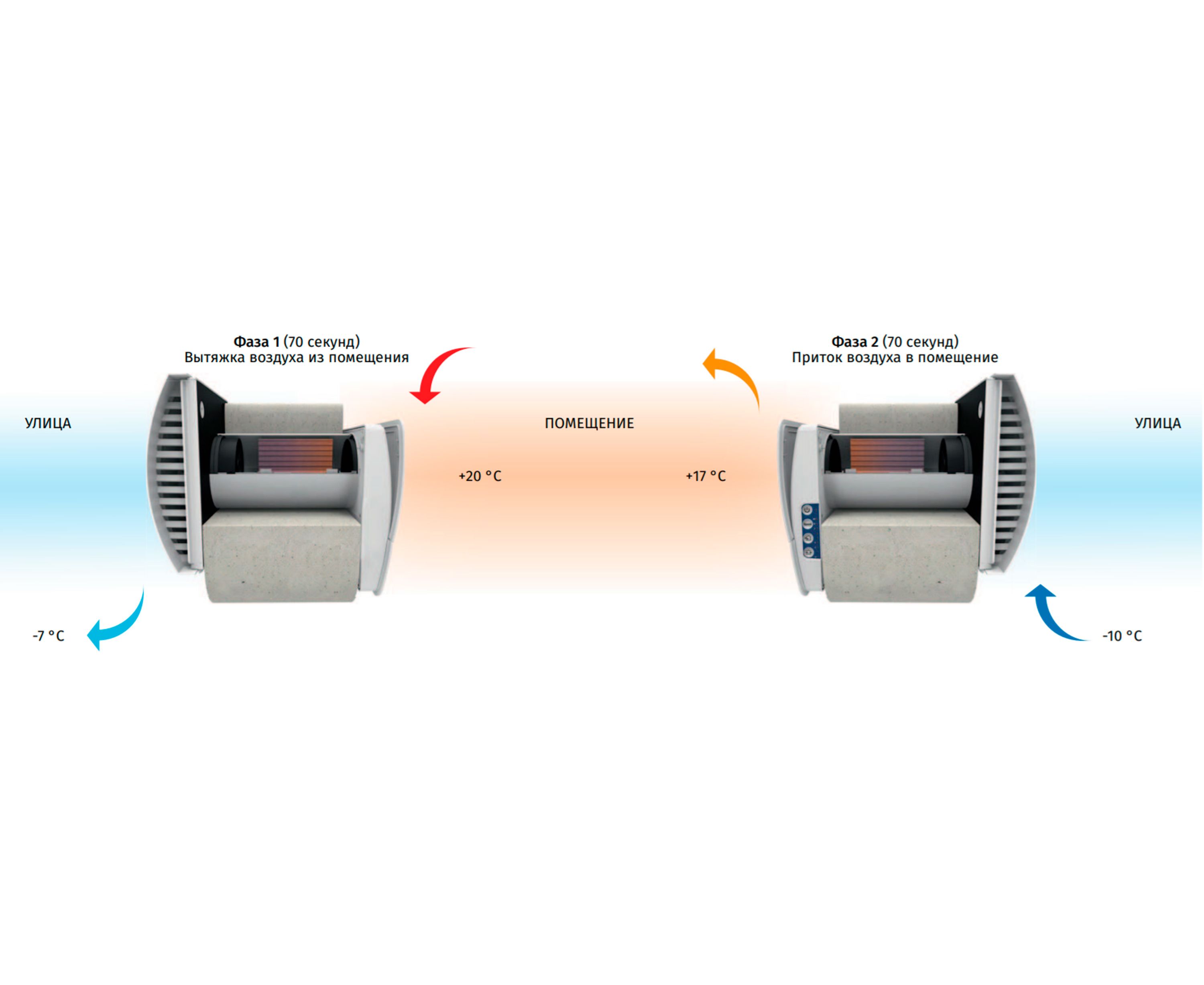 - Регенерація - це циклічний режим, що чергує періоди відтоку і припливу повітря, під час яких відбувається відбір і передача тепла і вологи. Це дозволяє зменшити втрати тепла з приміщення.