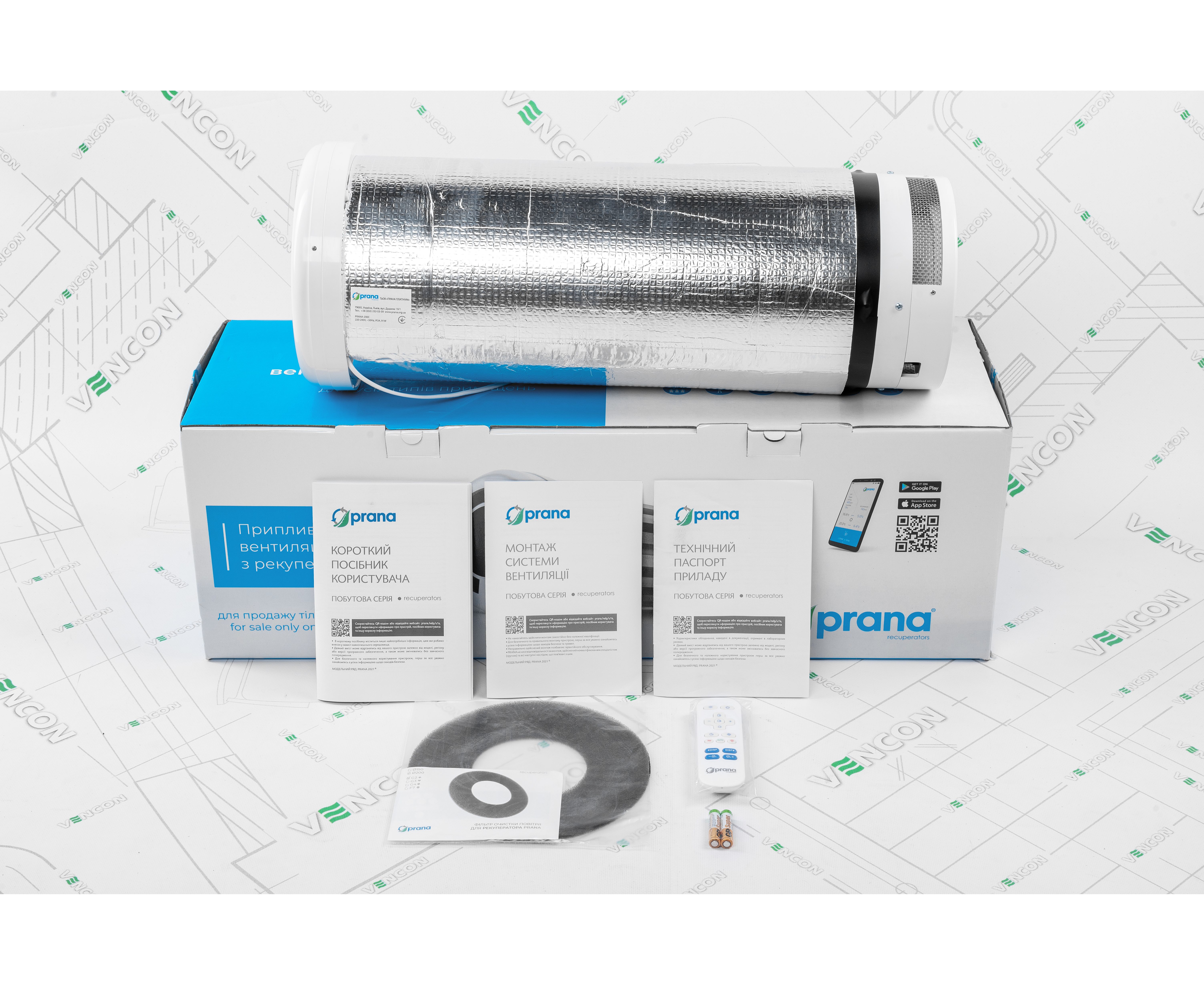 Регулювати роботу рекуператора можна за допомогою мобільного додатку і пульта дистанційного керування.