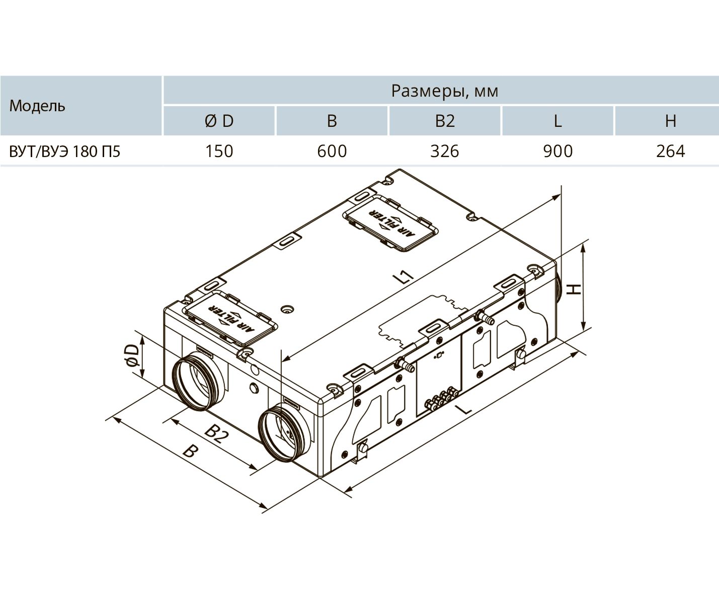 Припливно-витяжна установка Вентс ВУЕ 180 П5 А3