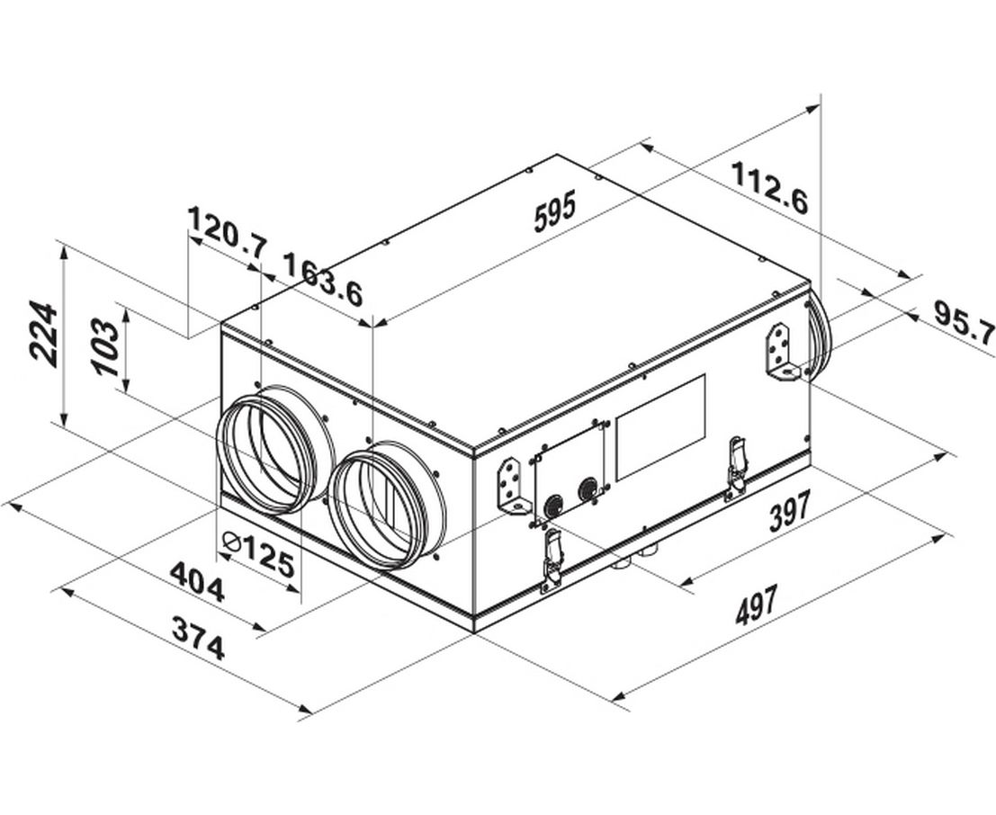 Прилад монтується до повітроводів з монтажним діаметром 125 мм. Компактна установка легко поміщається в ніші над підвісною стелею, на балконах, в коморах або інших приміщеннях. При монтажі важливо дотримуватися горизонтальну позицію і доступ до нижньої знімної панелі, в яку збирається конденсат при роботі рекуператора.