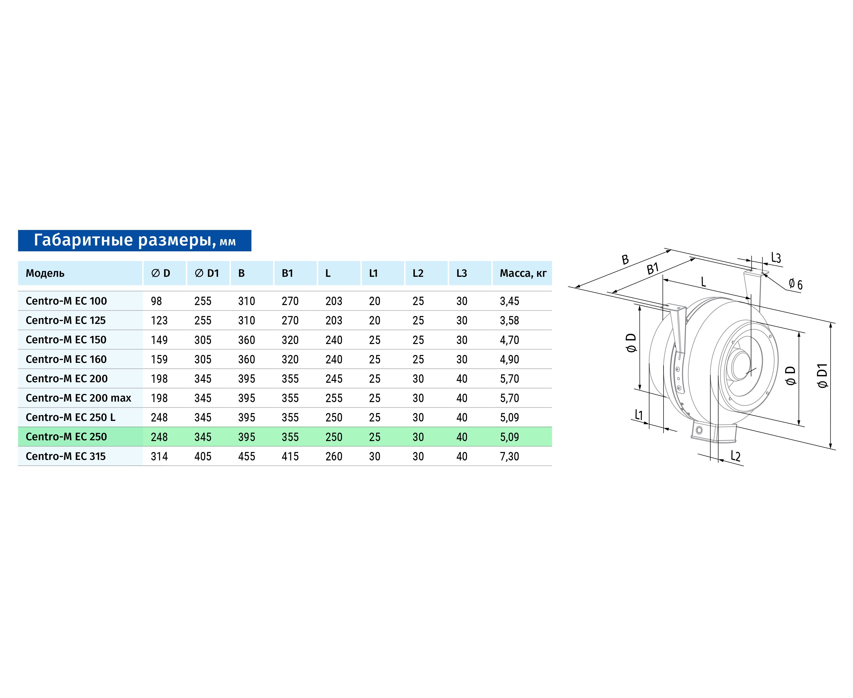 Канальний вентилятор Blauberg Centro-M EC 250