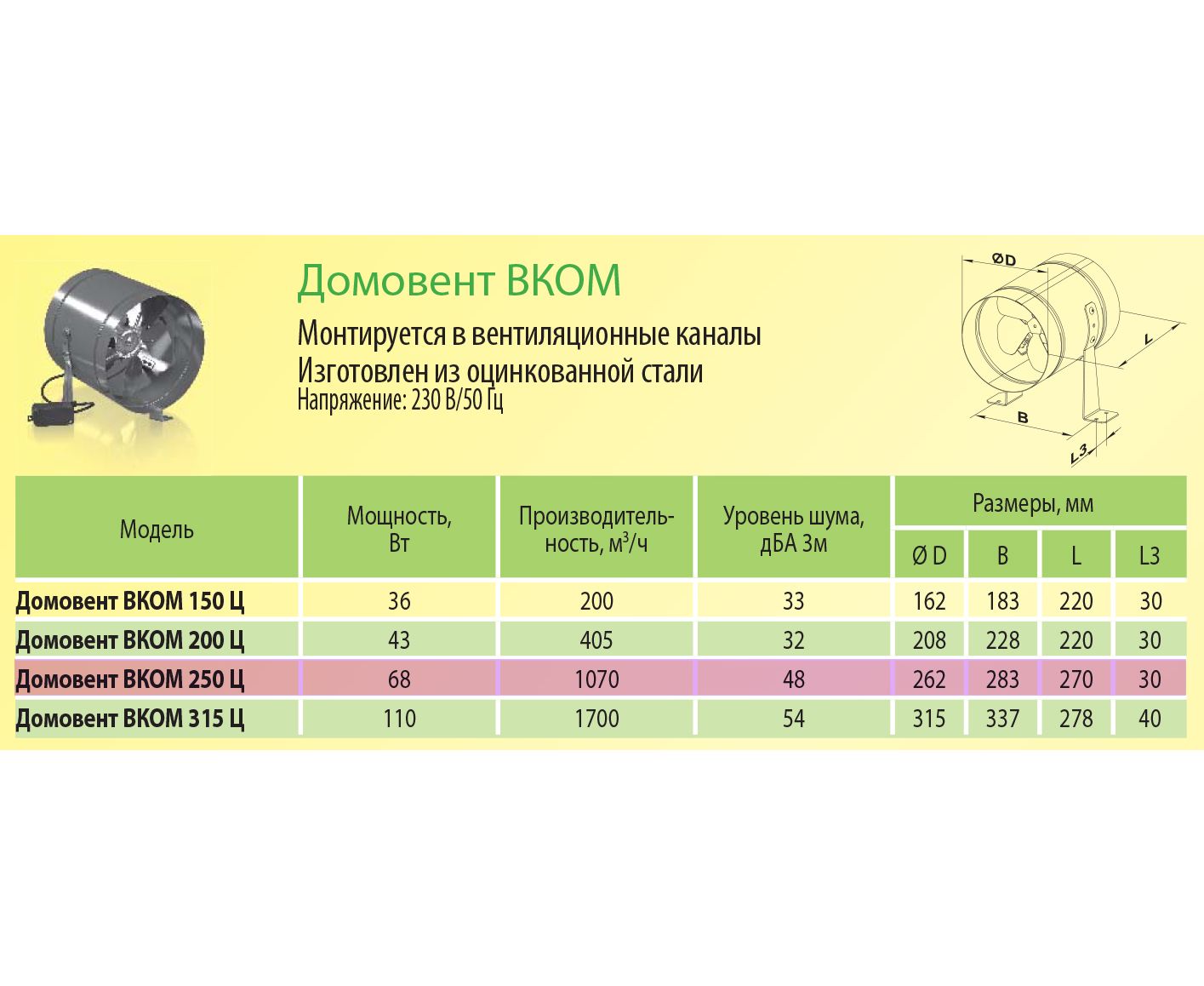 Канальний вентилятор ДОМОВЕНТ ВКОМ 250 Ц