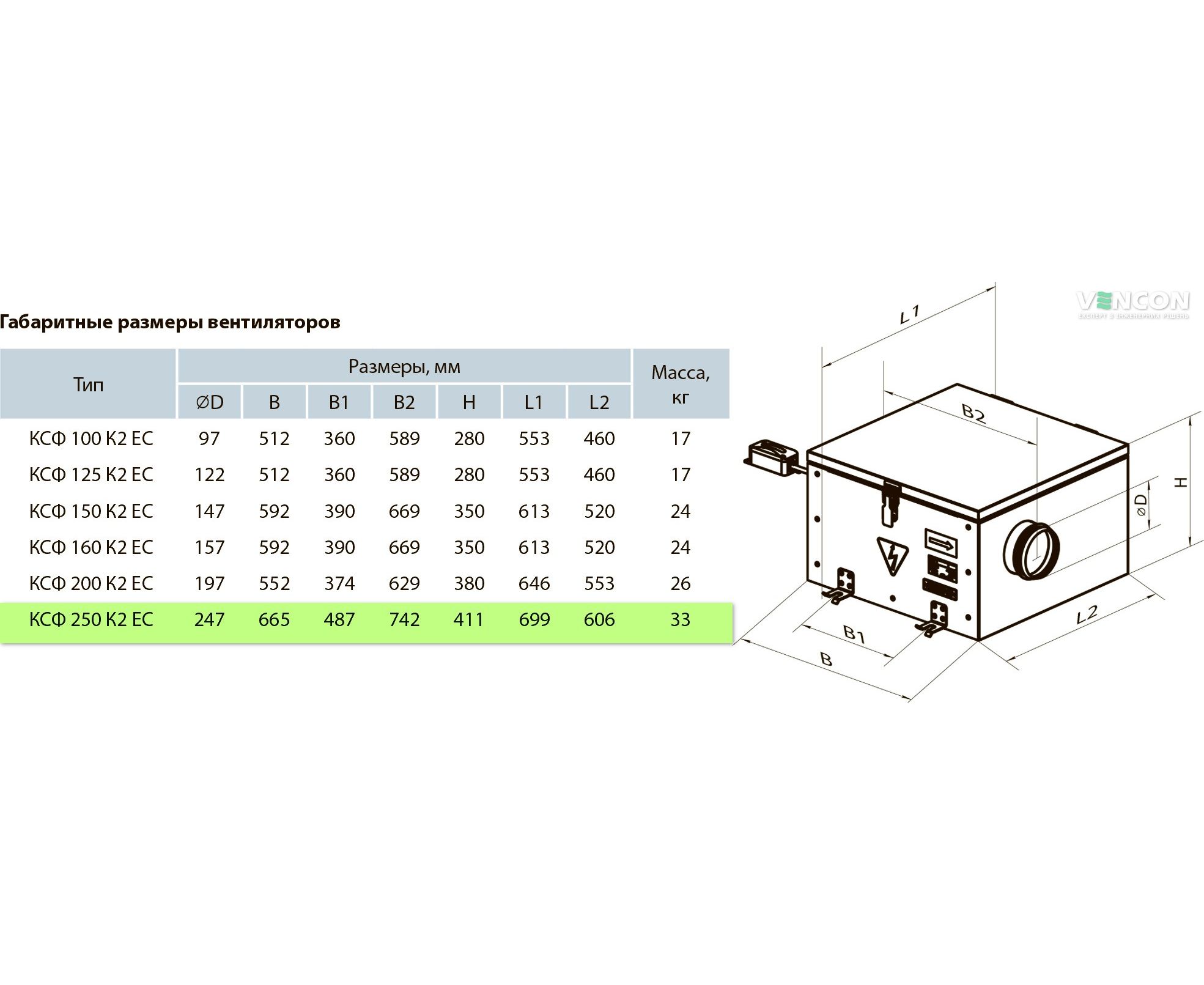 Канальний вентилятор Вентс КСФ 250 К2 ЕС