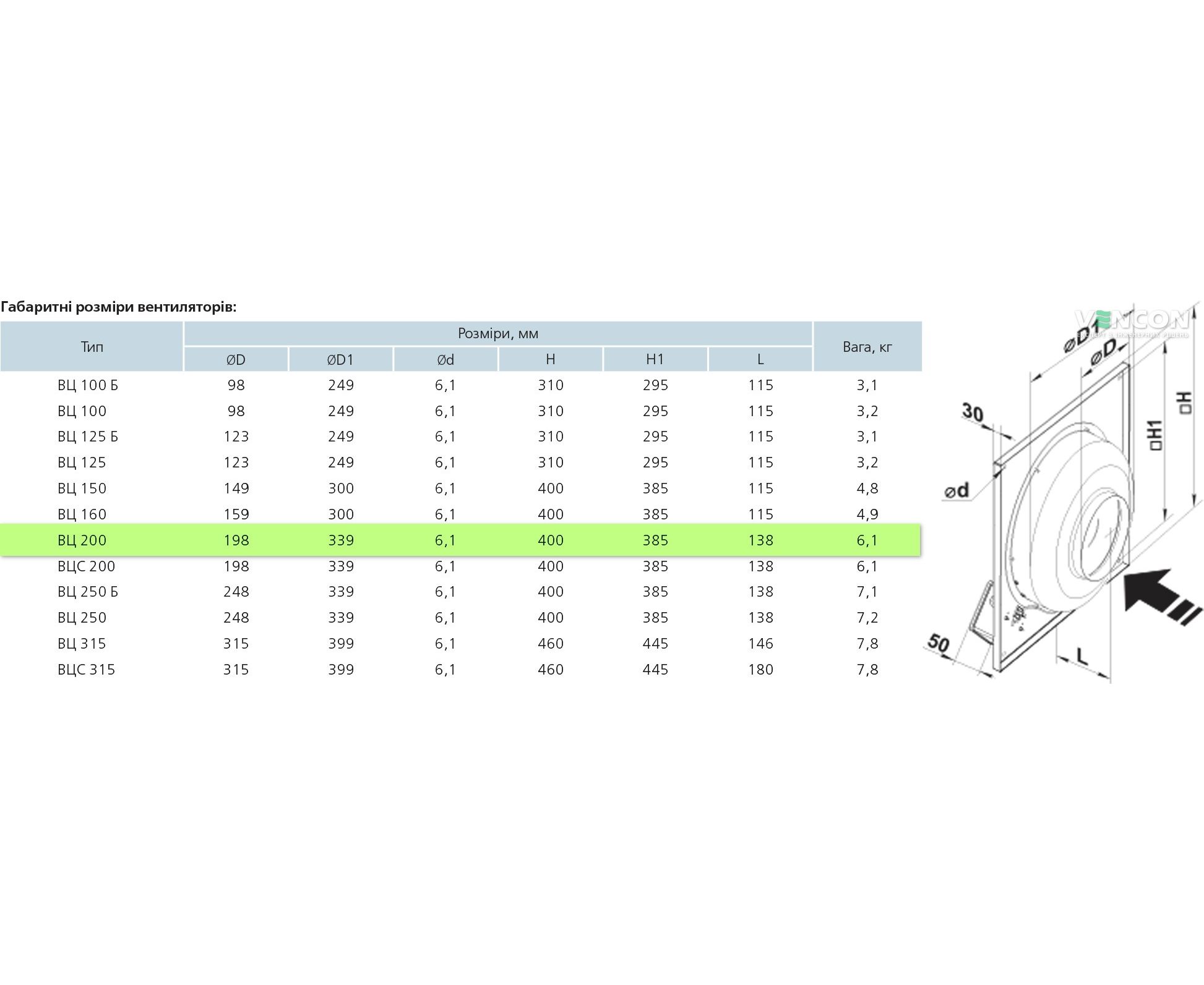 Ширина вентилятора