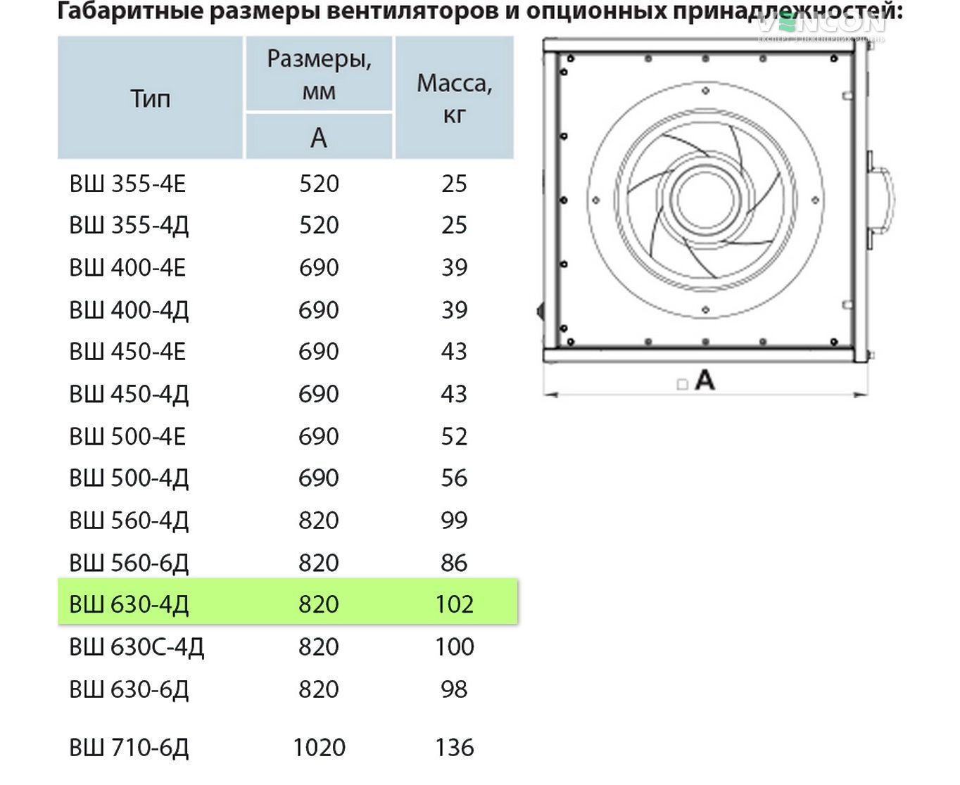 Ширина вентилятора