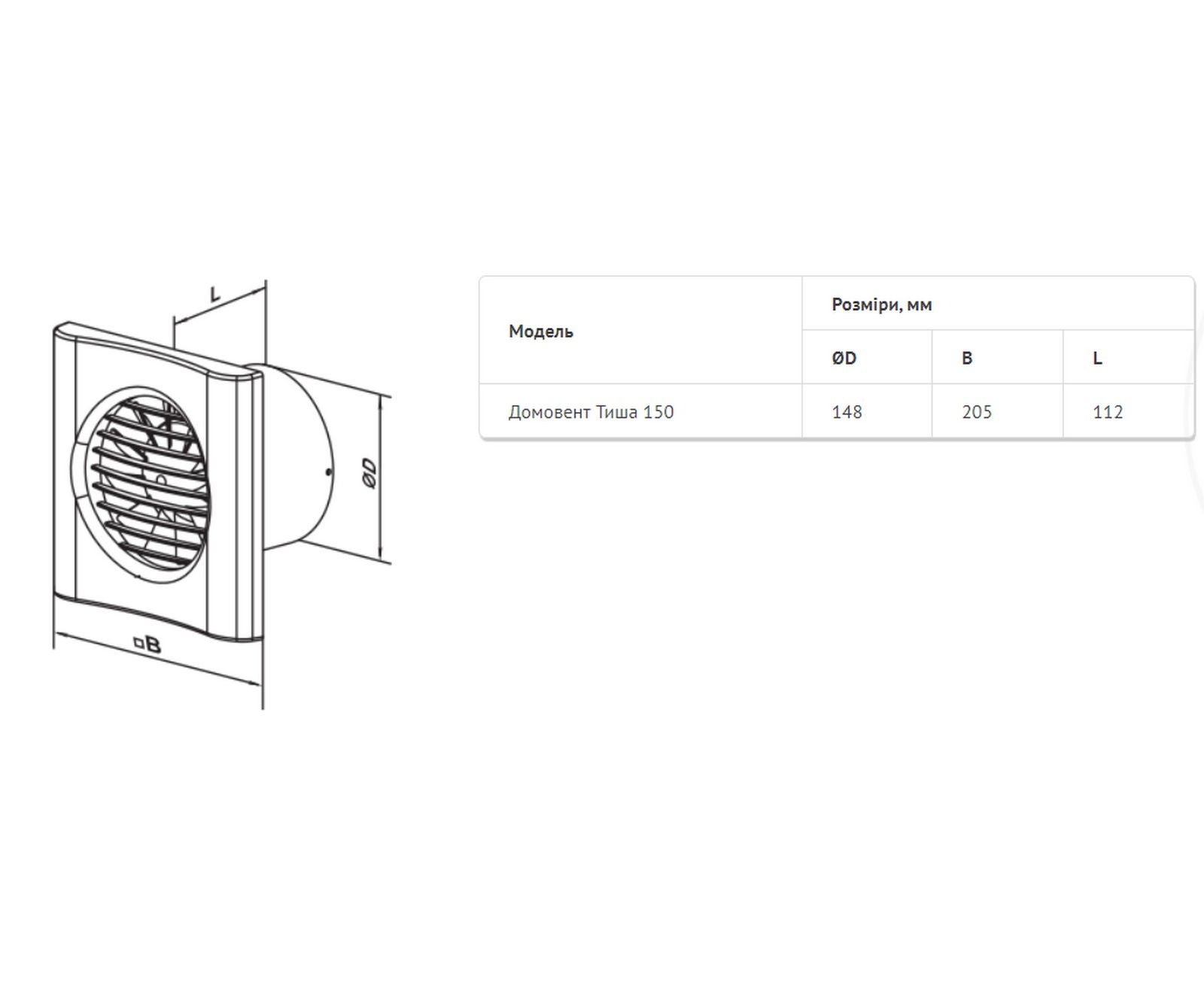 Витяжний вентилятор Домовент 150 Тиша Л