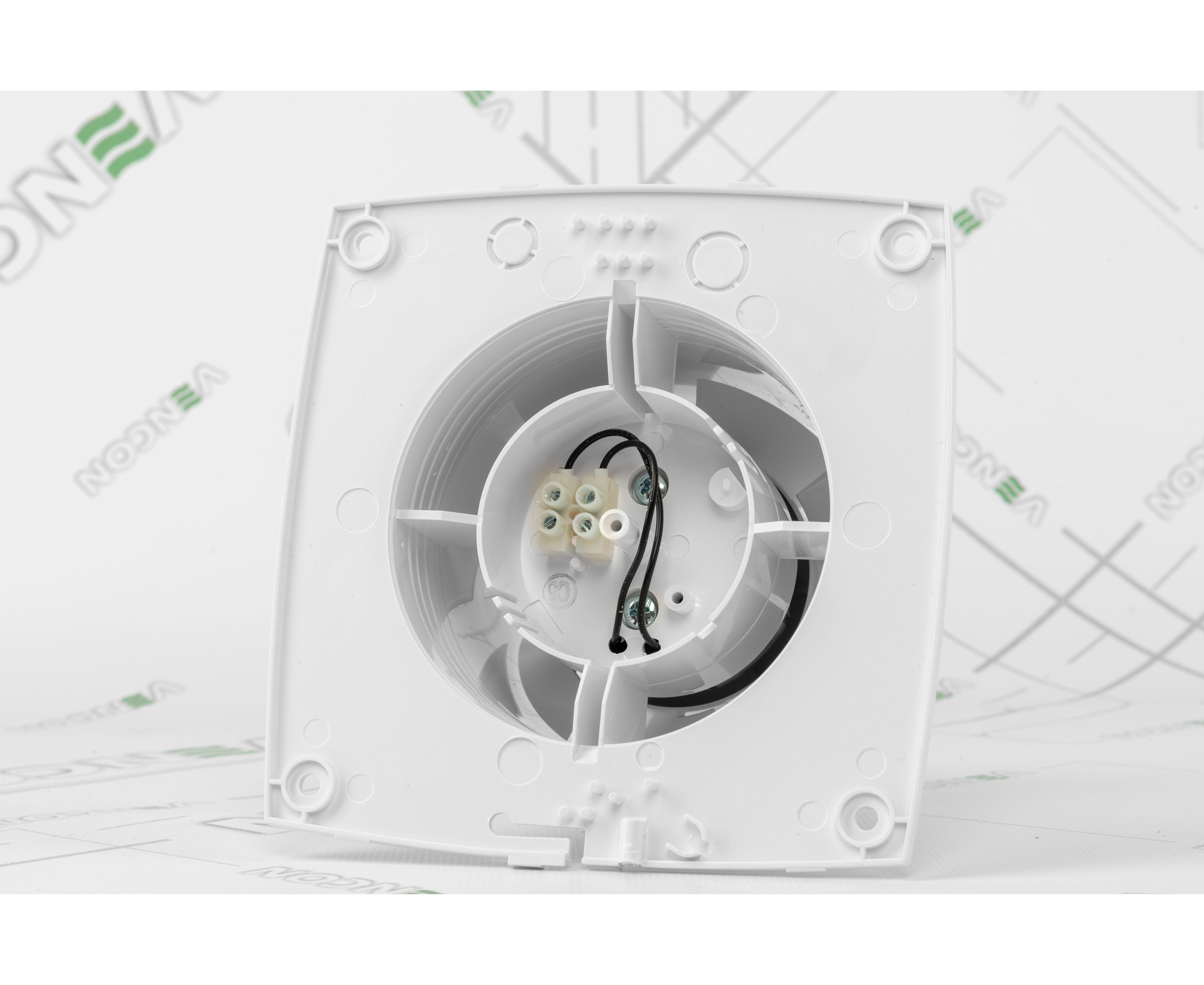 Матеріал, з якого виготовлені корпус, крильчатка і лицьова панель пристрою – міцний якісний АБС-пластик. Високий ступінь захищеності вбереже механізм від попадання всередину пилу, вологи, комах і різних механічних частинок.