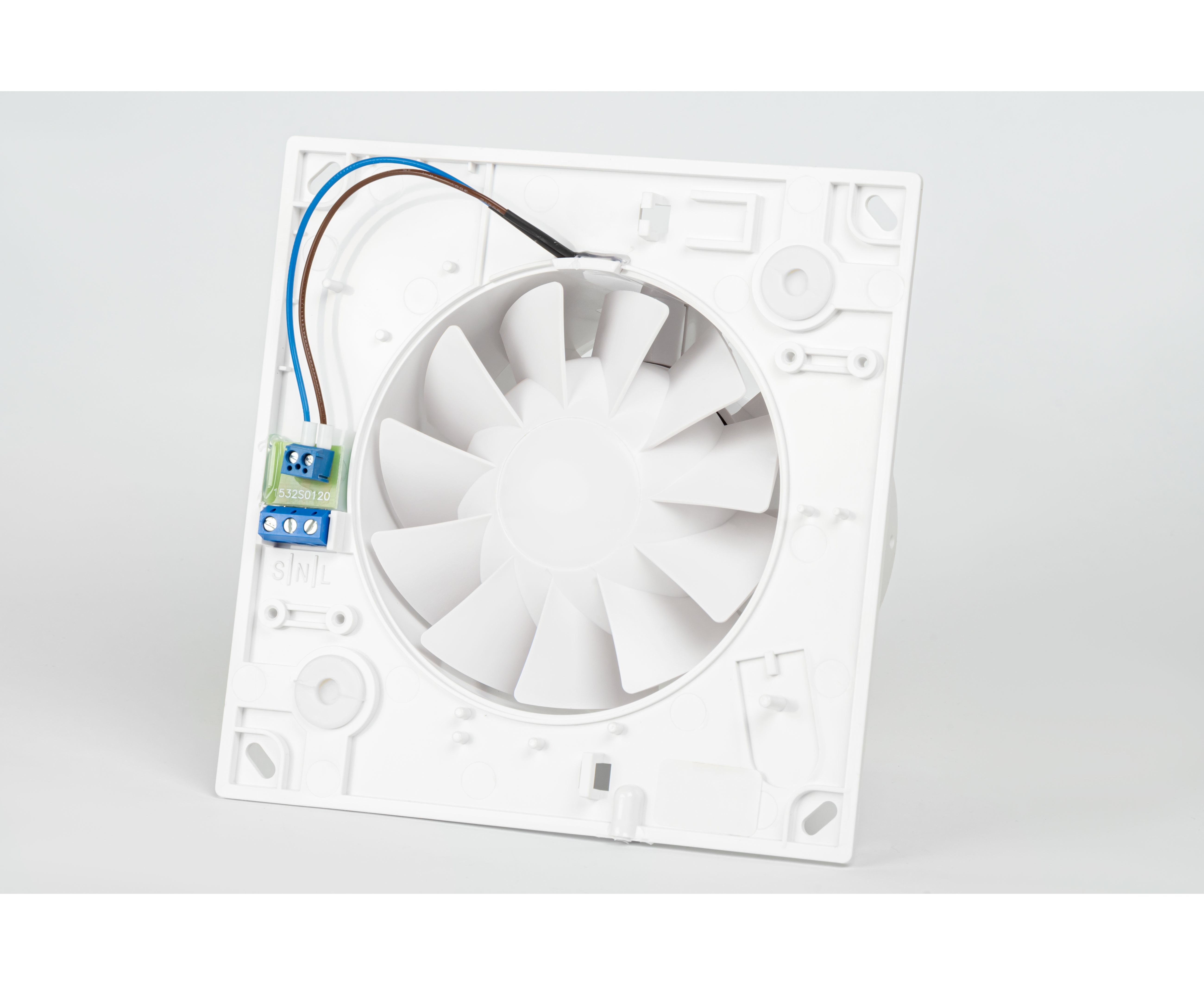Корпус, крильчатка і лицьова частина зроблені з міцного ABS-пластика, стійкого до будь-яких механічних пошкоджень і УФ-променів. Прилад характеризується низькошумною роботою в 25 дБ, що прирівнюється до людського шепоту. Енергозберігаюча і тиха робота приладу досягається завдяки наступним особливостям конструкції: