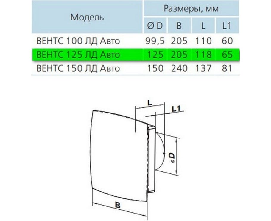 Витяжний вентилятор Вентс 125 ЛД Авто ТН