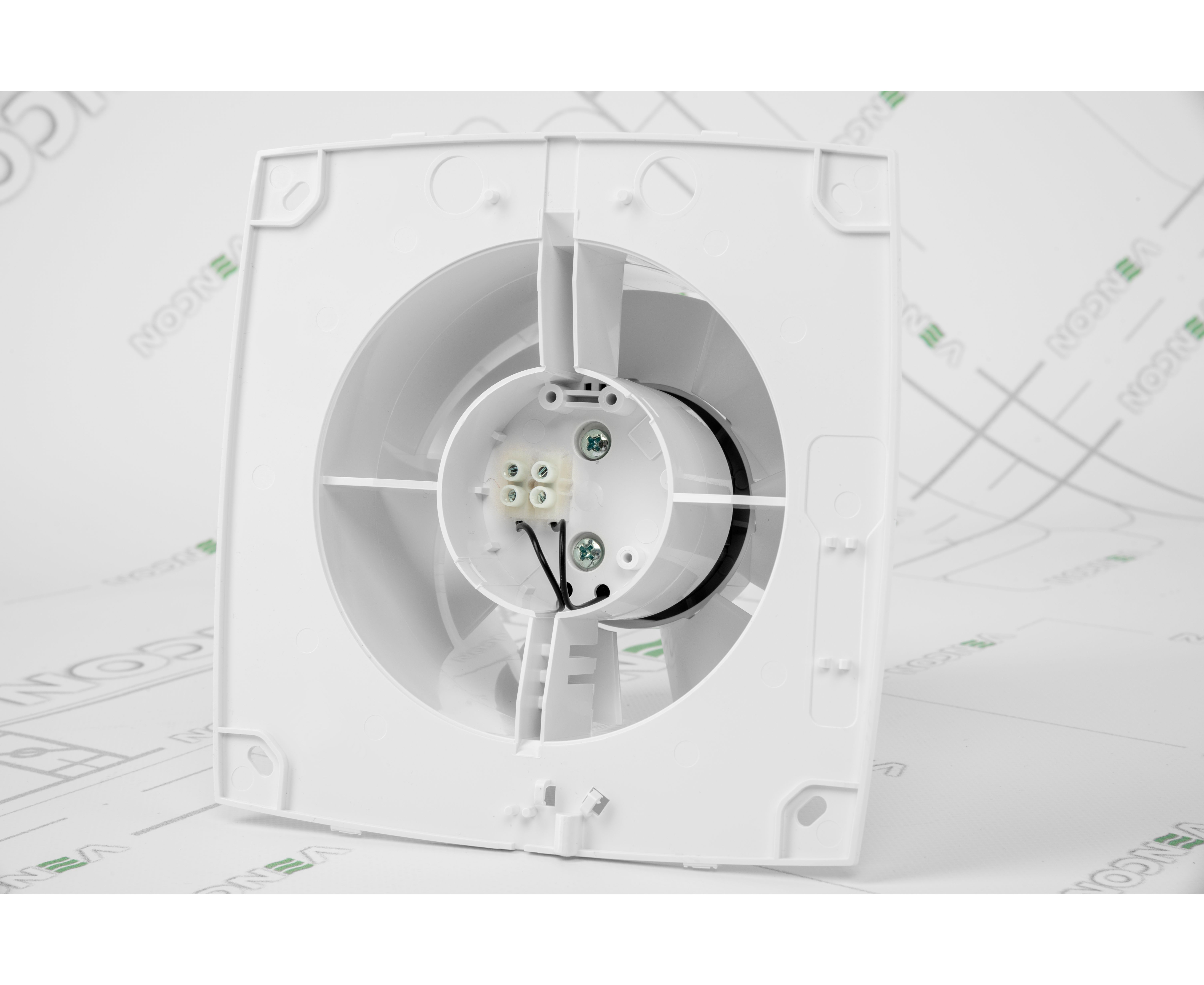 Модель створена для настінного монтажу, але може бути встановлена на стелю. Кріпиться за допомогою шурупів на стіну, а встановлюватися повинна в отвір вентшахти. Якщо вентиляційна шахта видалена, то для з'єднання використовують гнучкі повітроводи і хомути.