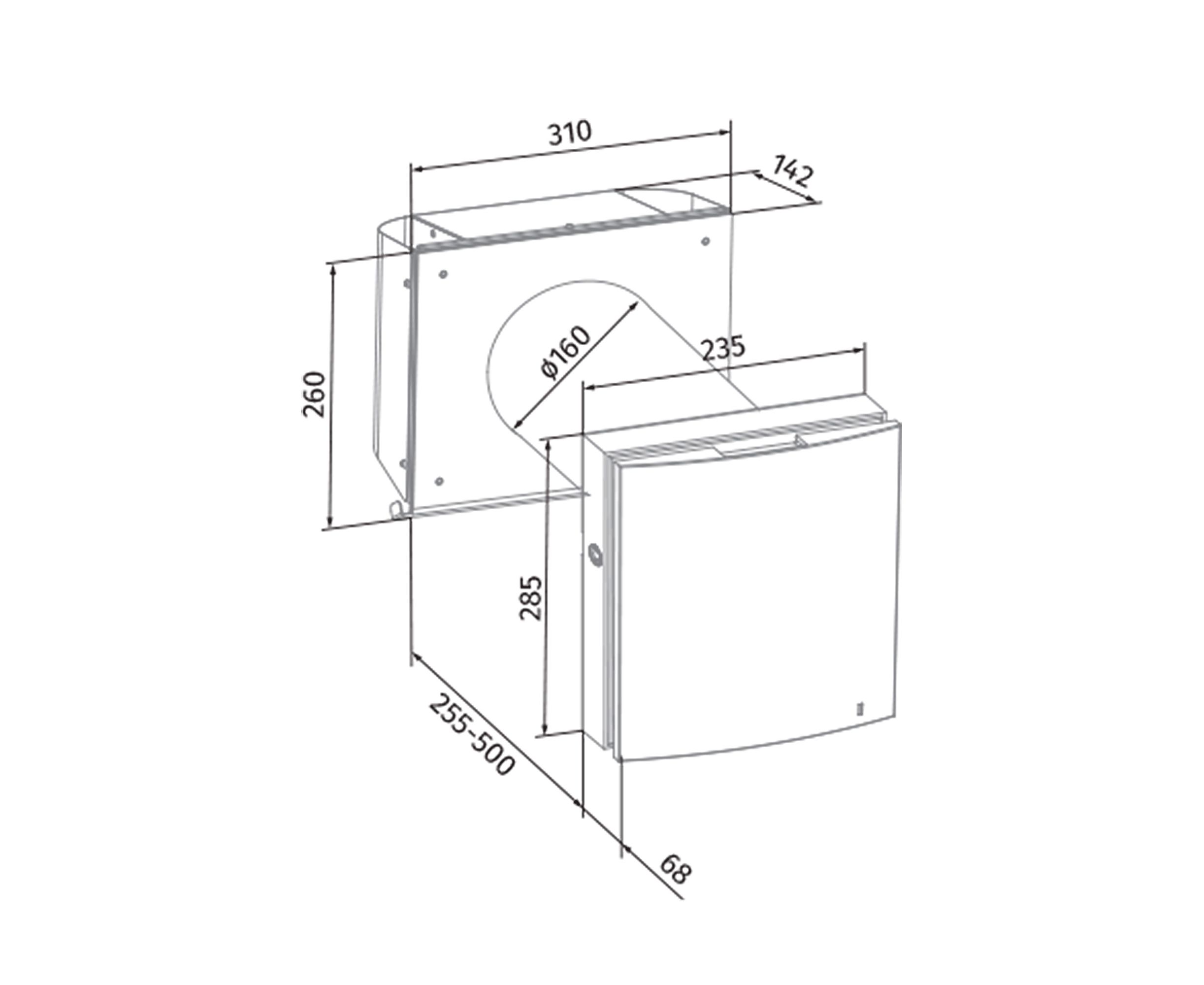 - Уникальная конструкция внешней решетки позволяет устанавливать проветриватель в тонкие стены - толщиной от 255 мм.