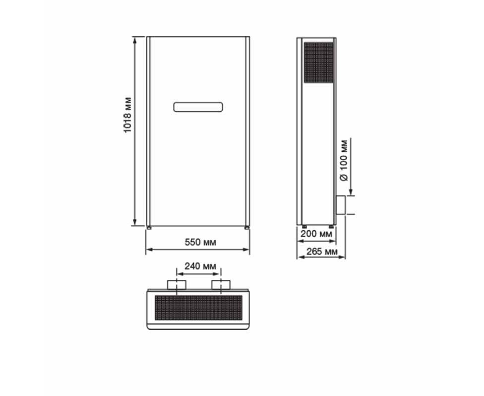 Устройство предназначено для напольной установки. Лучше доверить процесс монтажа специалистам с правом доступа к электросети высокого напряжения. Важно четко придерживаться схемы расположения прибора в стене, которая должна быть только наружной.