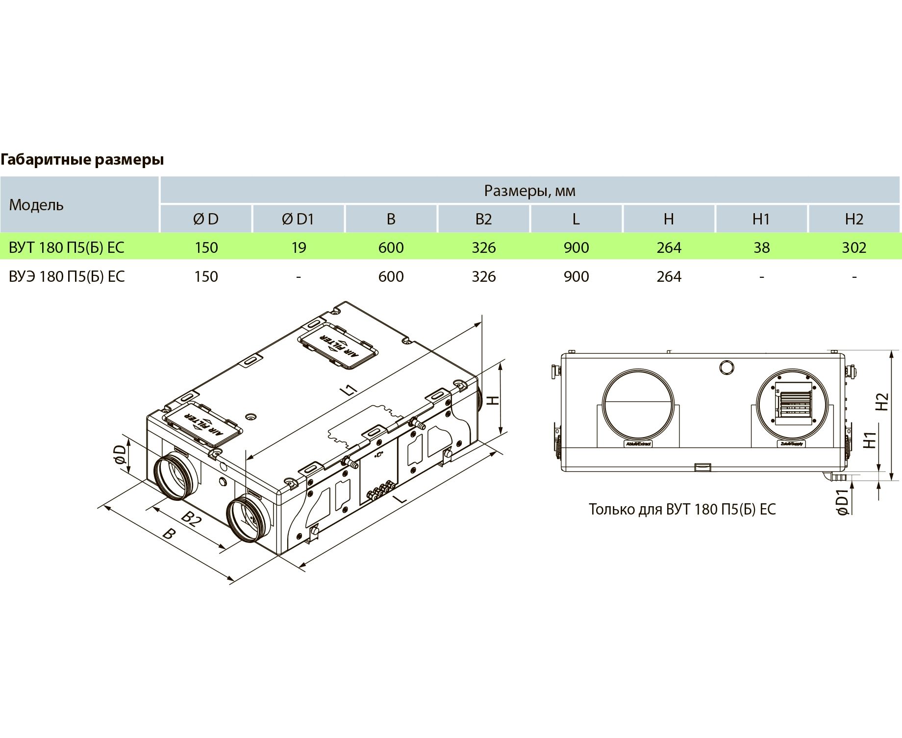 Приточно-вытяжная установка Вентс ВУТ 180 П5Б ЕС А21