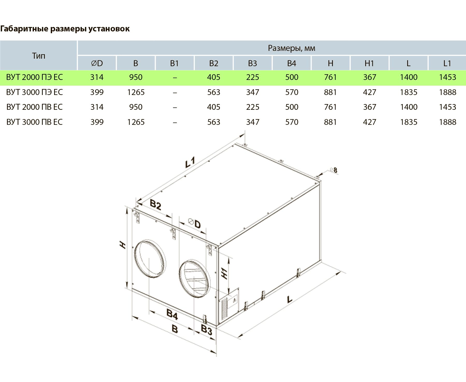 Типоразмер установки