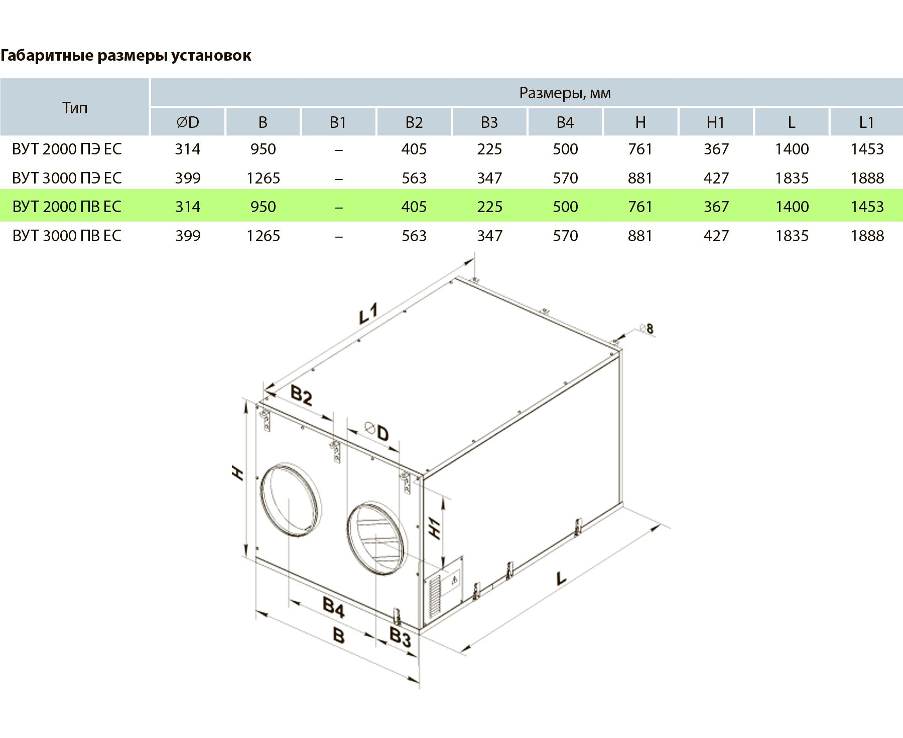 Типоразмер установки