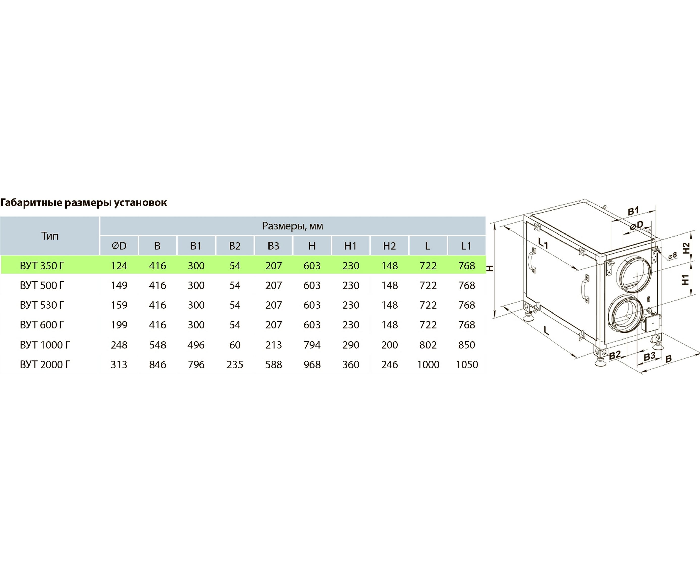 Приточно-вытяжная установка ВУТ Г представляет собой полностью готовый вентиляционный агрегат, обеспечивающий фильтрацию, подачу свежего воздуха в помещения и удаление загрязненного. При этом тепло вытяжного воздуха передается приточному воздуху через пластинчатый рекуператор. Все модели предназначены для соединения с круглыми воздуховодами номинальным диаметром 125, 150, 160, 200, 250, 315 мм.