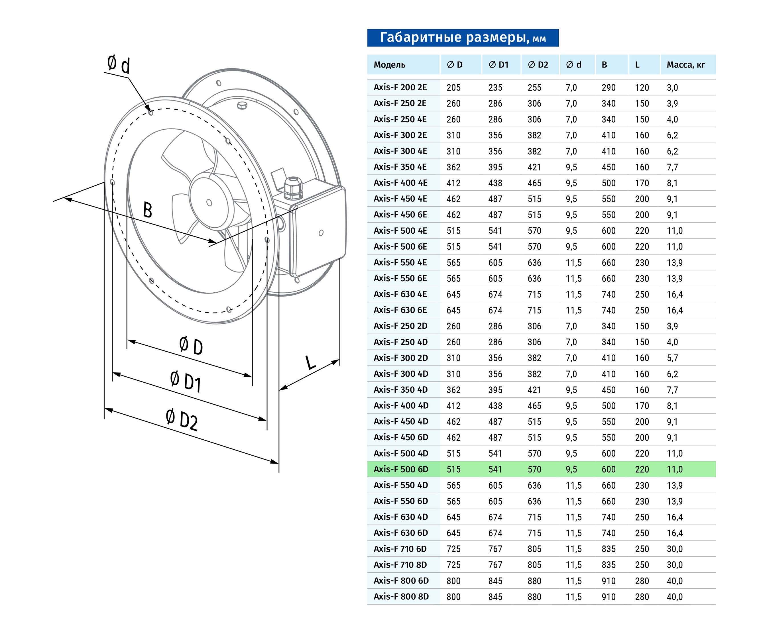 Канальный вентилятор Blauberg Axis-F 500 6D