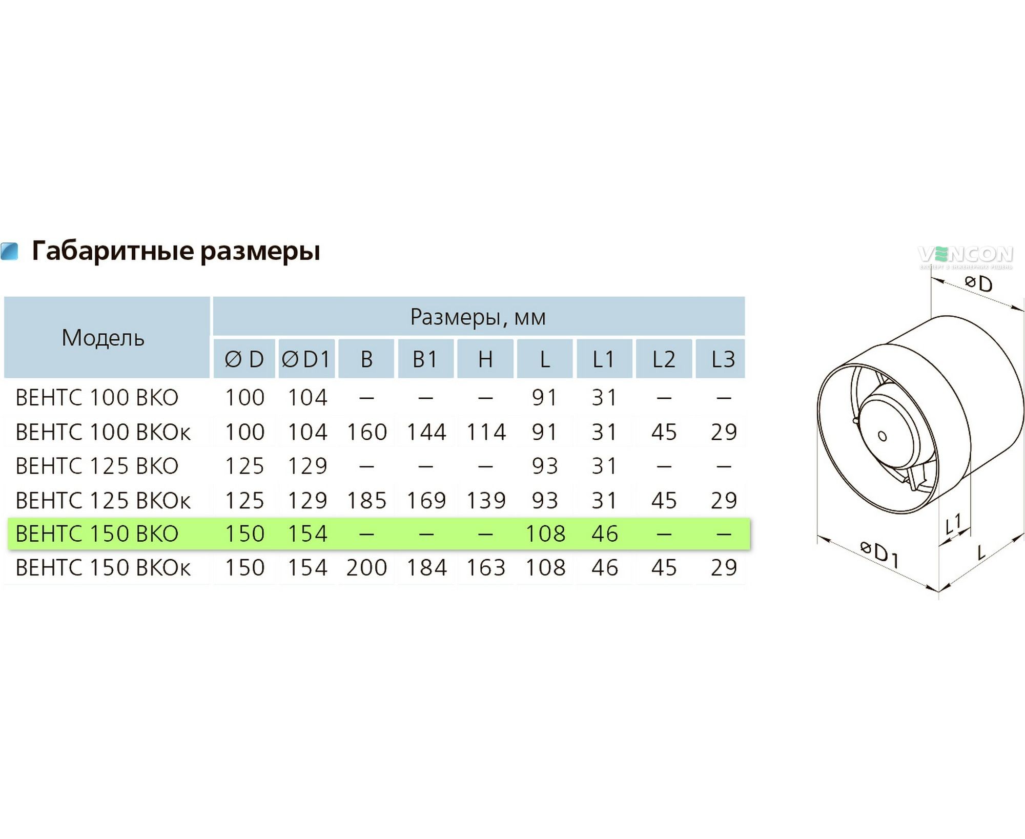 Канальный вентилятор Вентс 150 ВКО (220/60)