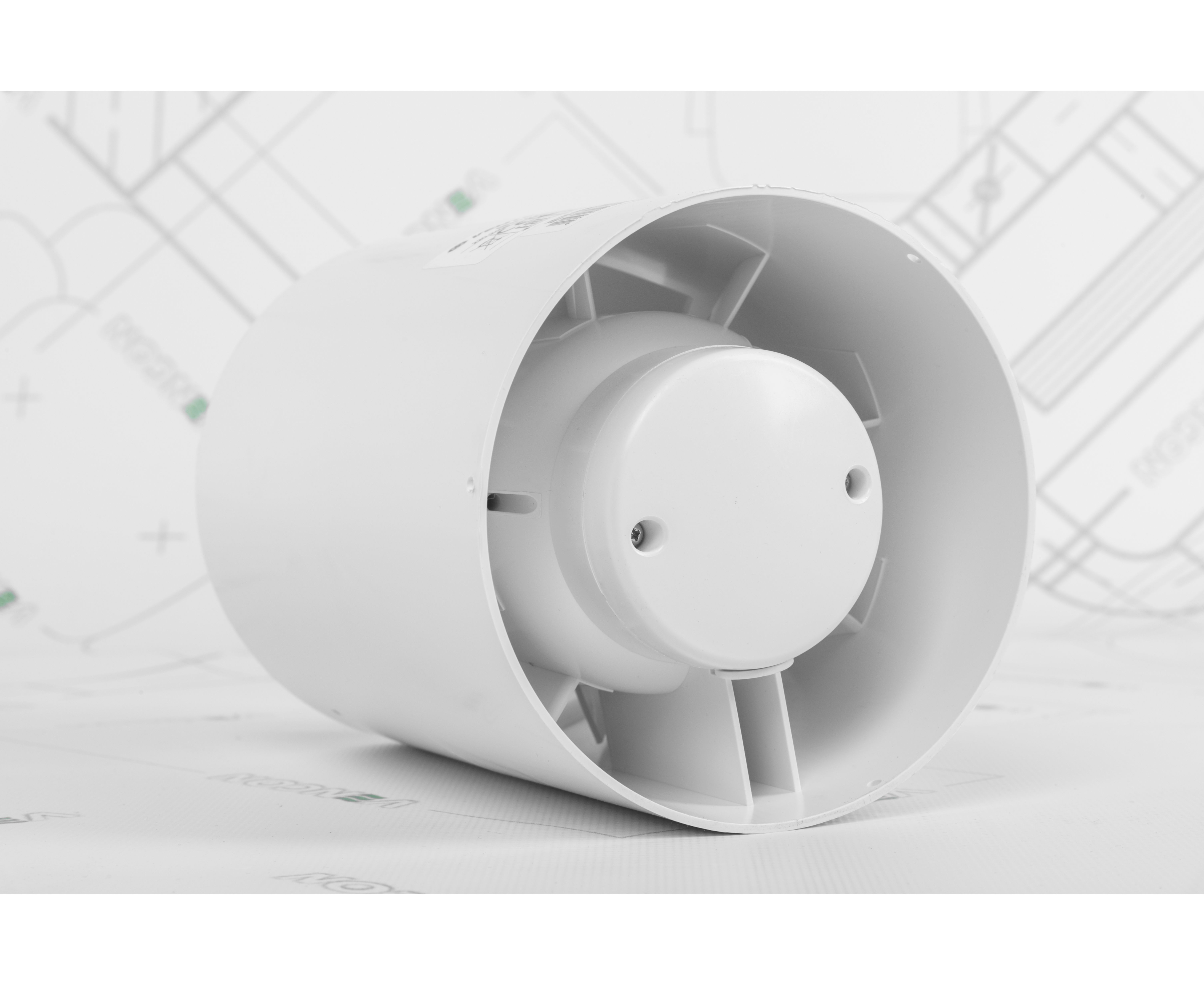 Крыльчатка и корпус прибора изготовлены из пластика повышенной прочности. Относительно бесшумной работе способствует аэродинамическая конструкция, созданная по запатентованной технологии компанией Вентс. Благодаря выпрямителям воздуха, расположенным на выходном патрубке, снижается турбулентность и увеличивается поток воздуха. Также снижает уровень шума особая форма крыльчаток и гасящие прокладки, нивелирующие вибрацию и шум в процессе работы мотора.