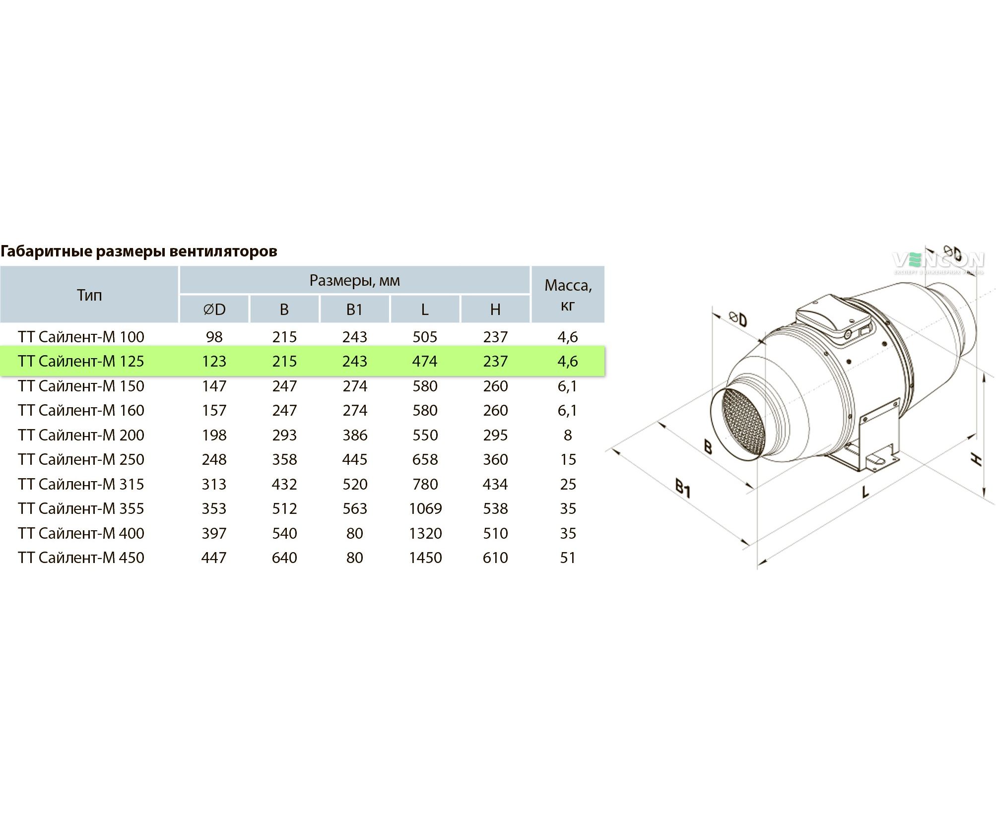 Канальный вентилятор Вентс ТТ Сайлент-М 125