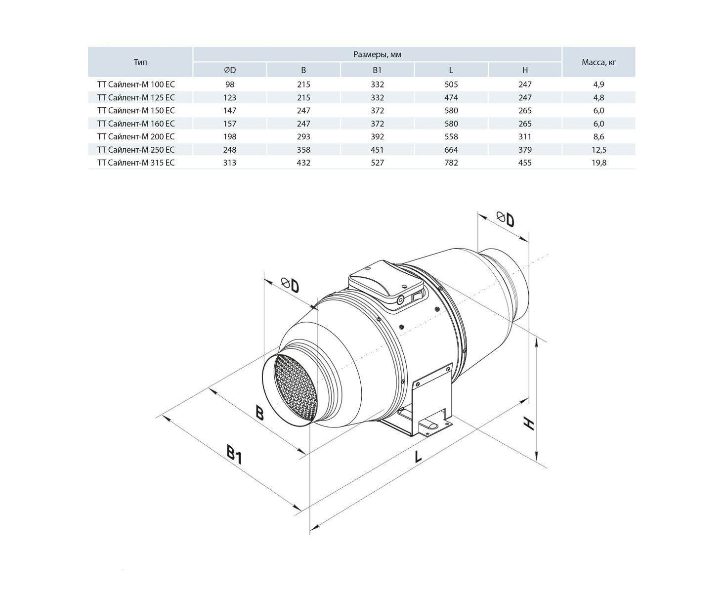 Канальный вентилятор Вентс ТТ Сайлент-М 250 ЕС