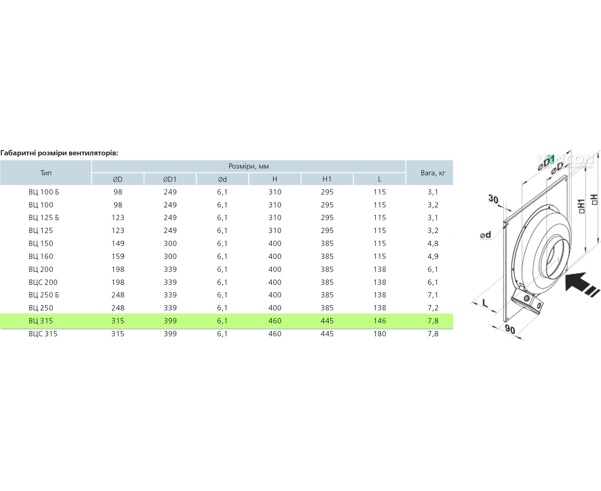 Ширина вентилятора
