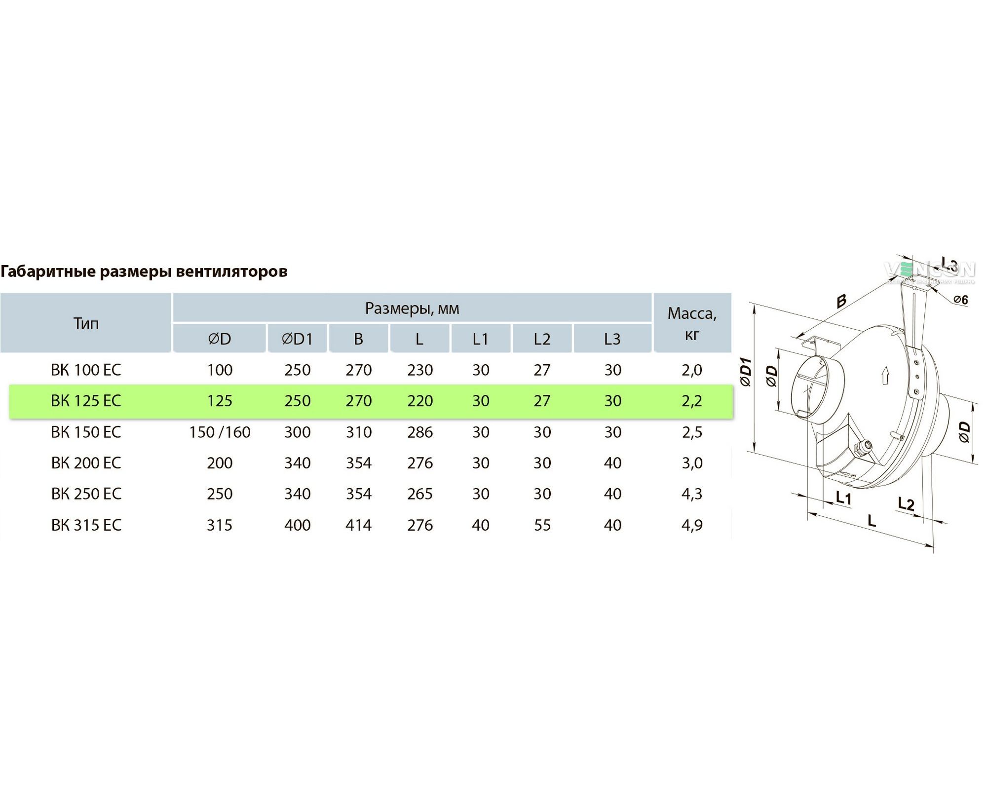 Канальный вентилятор Вентс ВК 125 ЕС