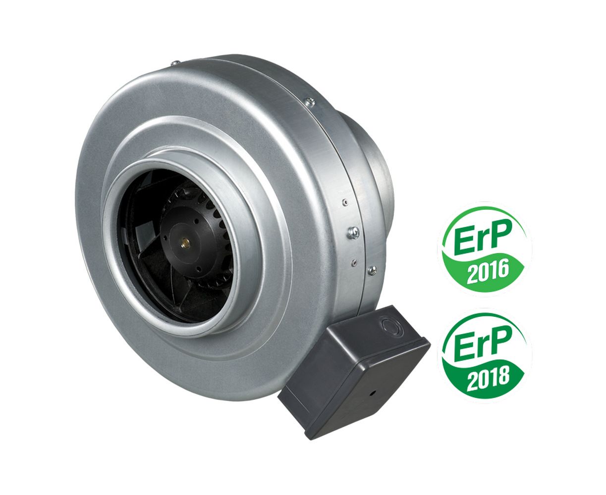 Однофазные двигатели с внешним ротором оснащены центробежным рабочим колесом с назад загнутыми лопатками. Двигатель оснащен встроенной тепловой защитой с автоматическим перезапуском. Применение в двигателе подшипников качения обеспечивает большой срок эксплуатации (40 000 часов). Для достижения точных характеристик, низкого уровня шума и безопасной работы вентилятора каждая турбина при сборке проходит динамическую балансировку. Двигатель в вентиляторе имеет класс защиты IP 44.