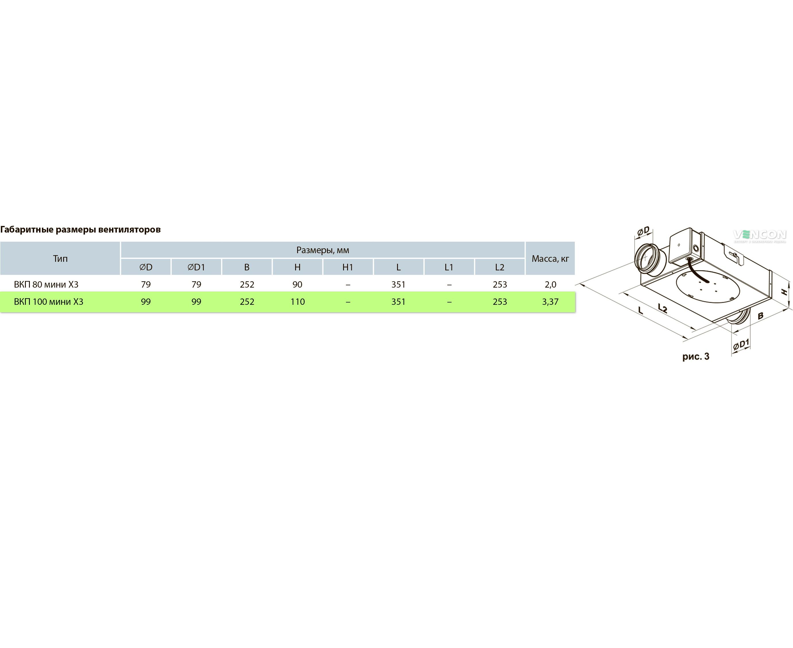 Ширина вентилятора