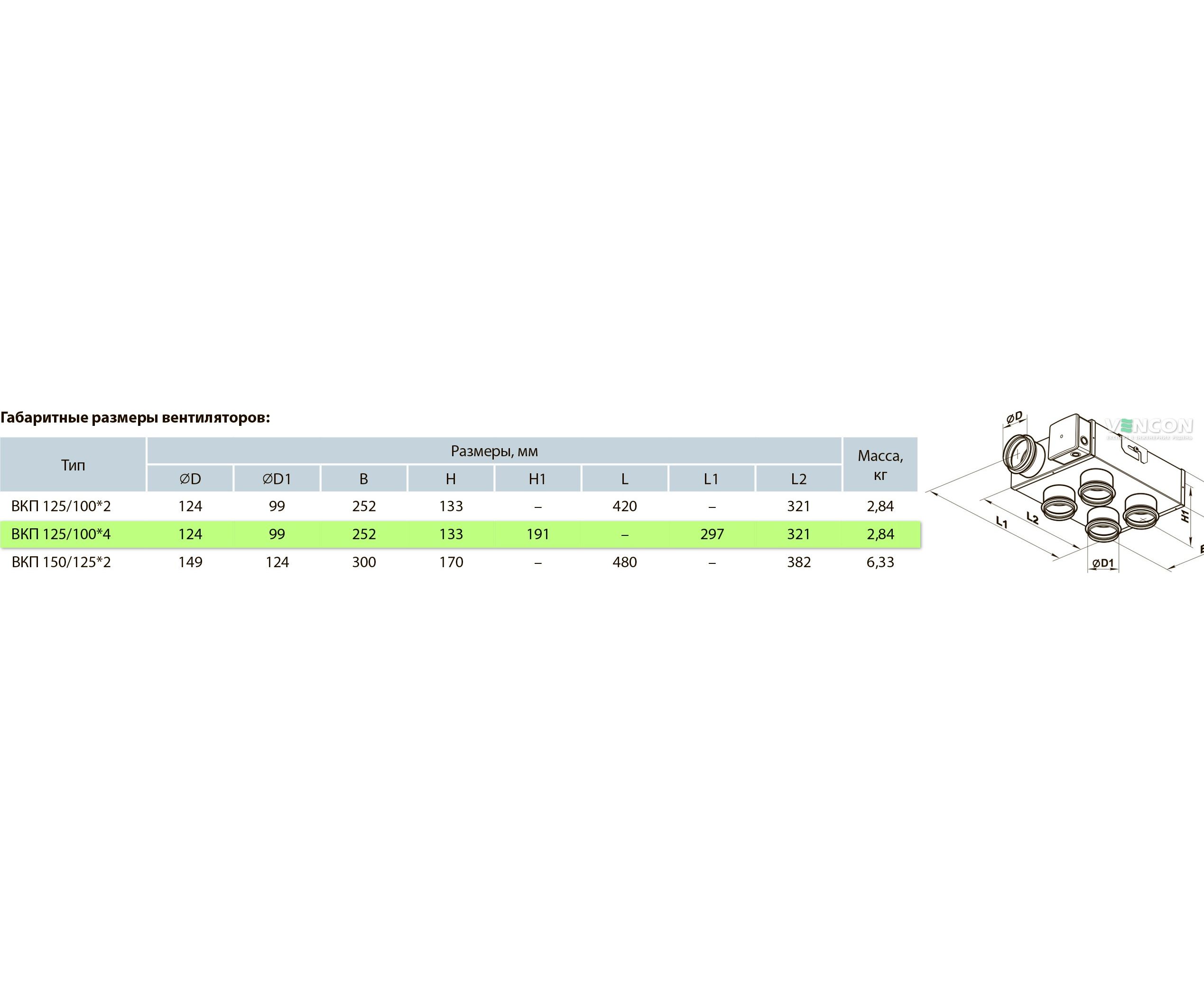 Канальный вентилятор Вентс ВКП 125/100*4