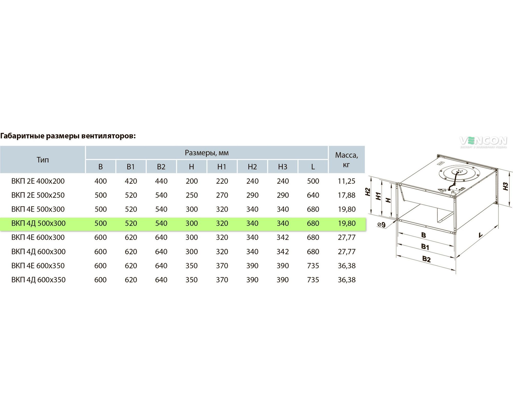 Ширина вентилятора