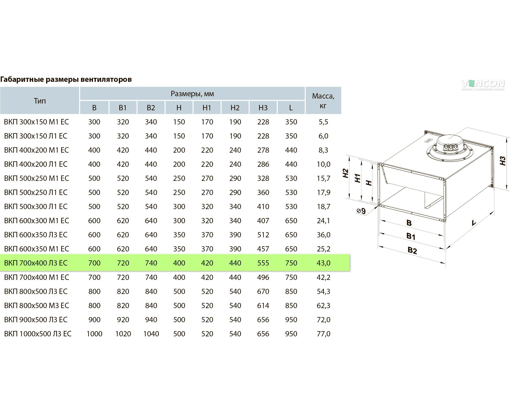 Канальный вентилятор Вентс ВКП 700х400 Л3 ЕС