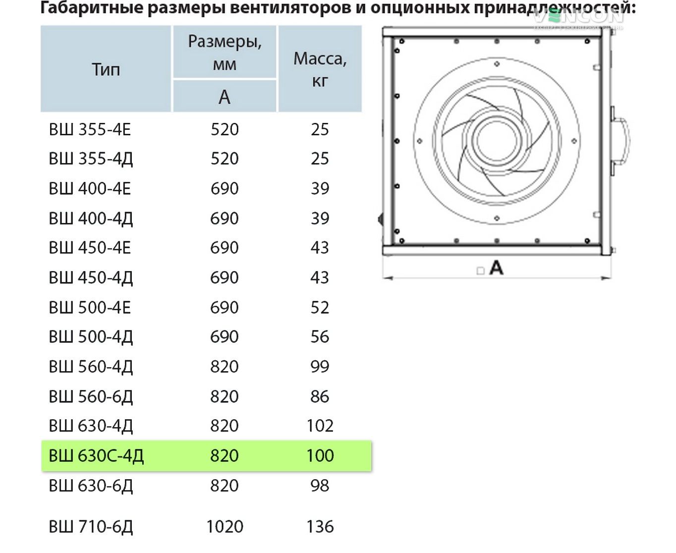 Ширина вентилятора